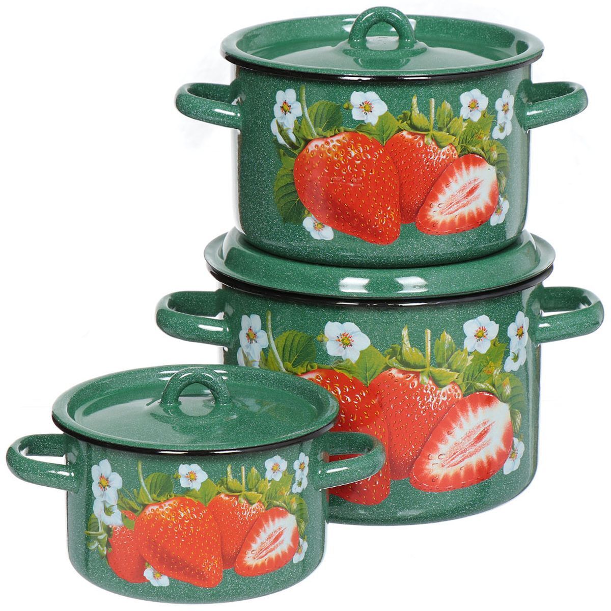 «Набор эмалированной посуды 6 предметов, кастрюли 1.5,2.9,4.5 л, СтальЭмаль, Клубника садовая, 1с33, в ассортименте» можно купить мелким, средним и крупным оптом по привлекательным ценам благодаря тому, что мы сотрудничаем с российскими и международными производителями напрямую, без посредников.