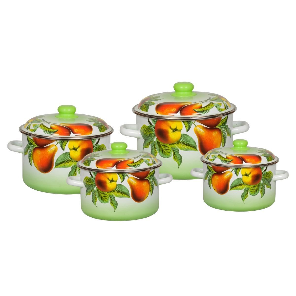 Набор эмалированной посуды 8 пр, кастрюли 2,3,4,5.5 л, СтальЭмаль, Дары лета, 7KB351M