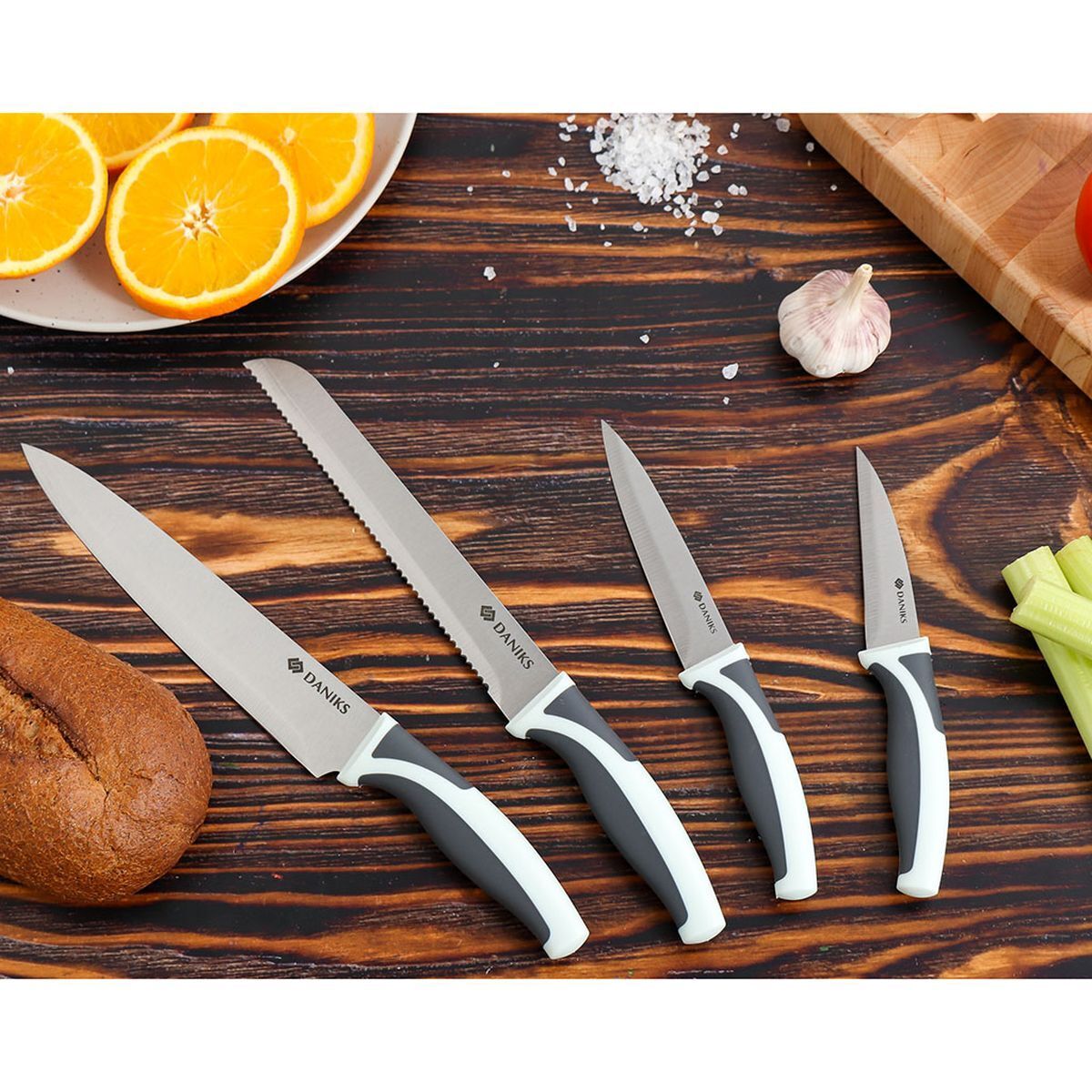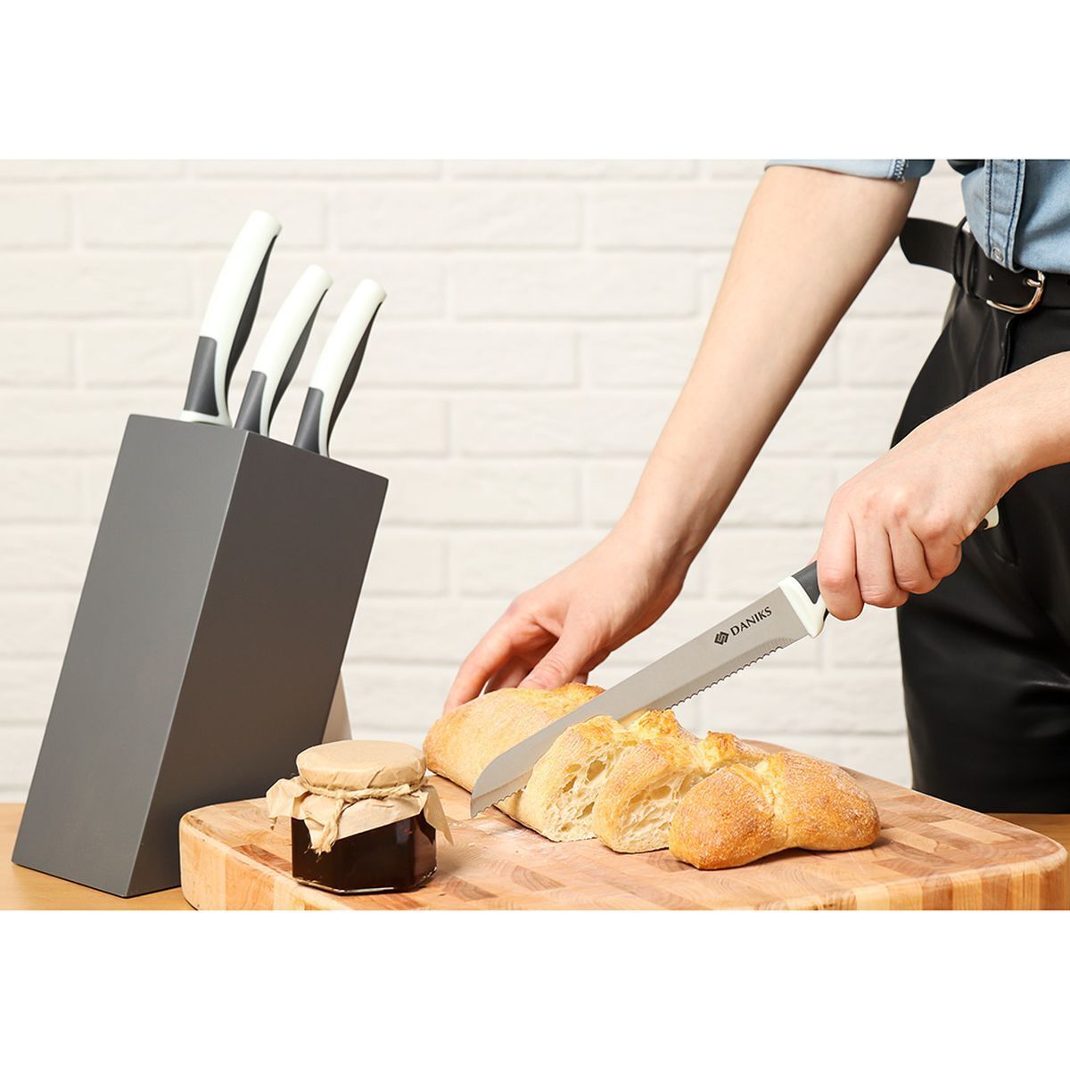 «Набор ножей 5 предметов, 20 см, 20 см, 12.5 см, 9 см, нержавеющая сталь, рукоятка пластик, с подставкой, Daniks, Маренго, JA20190132» можно купить мелким, средним и крупным оптом по привлекательным ценам благодаря тому, что мы сотрудничаем с российскими и международными производителями напрямую, без посредников.
