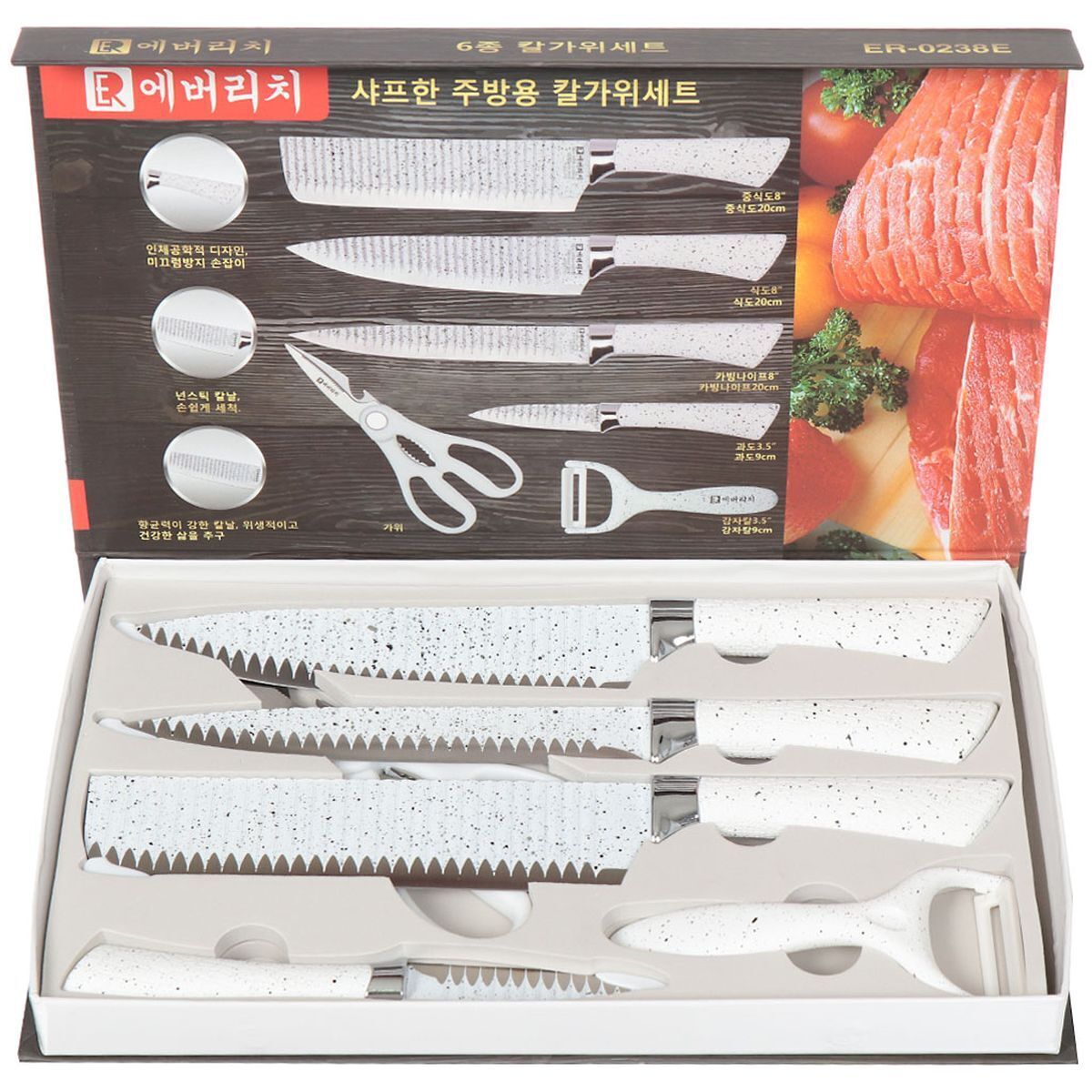 «Набор ножей 6 предметов, в коробке, сталь, рукоятка пластик, Мрамор белый, Y190» можно купить мелким, средним и крупным оптом по привлекательным ценам благодаря тому, что мы сотрудничаем с российскими и международными производителями напрямую, без посредников.
