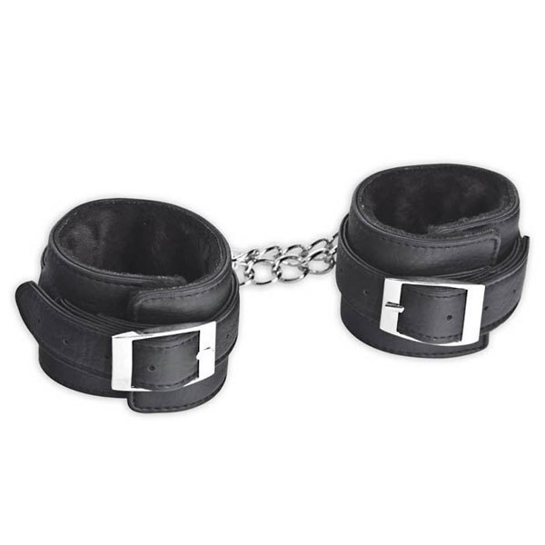 Комфортные оковы для запястий или щиколоток из искусственной мягчайшей кожи с подкладкой из искусственного меха. Размер регулируется ремнями с металлическими пряжками, Оковы соединены между собой толстой цепью, которая закрывается на замок: в комплекте к нему 2 ключа. Позволят надежно и с комфортом заковать Вашего партнера или партнершу. One size.