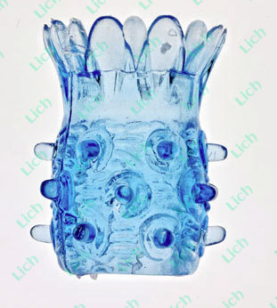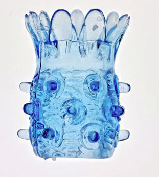 Голубая силиконовая насадка с шипами и шариками. Очень растяжима в длину и по диаметру.