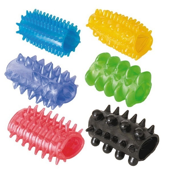 Этот набор насадок поможет предугадать сексуальное настроение вашей партнерши. Ей хочется нежности? Тогда стоит надеть на пенис насадочку-щеточку с тоненькими шипами. Сегодня она мечтает о жестком сексе? Под рукой насадка с большими шишечками и крупными шипами. Многоцветные насадки с различным рельефом прекрасно растягиваются: «сядут» на член, как влитые. Длина каждой насадки - 5 см., диаметр 2 см. Каждая насадка упакована в отдельный пакетик.