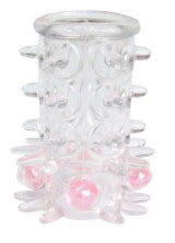 Силиконовая прозрачная насадка с крупными розовыми бусинками для дополнительной стимуляции предвагинальной зоны у женщины. Очень нежная и эластичная , легко растягивается до нужного размера. Длина 7 см, Диаметр 2 см (растягивается до 8 см).