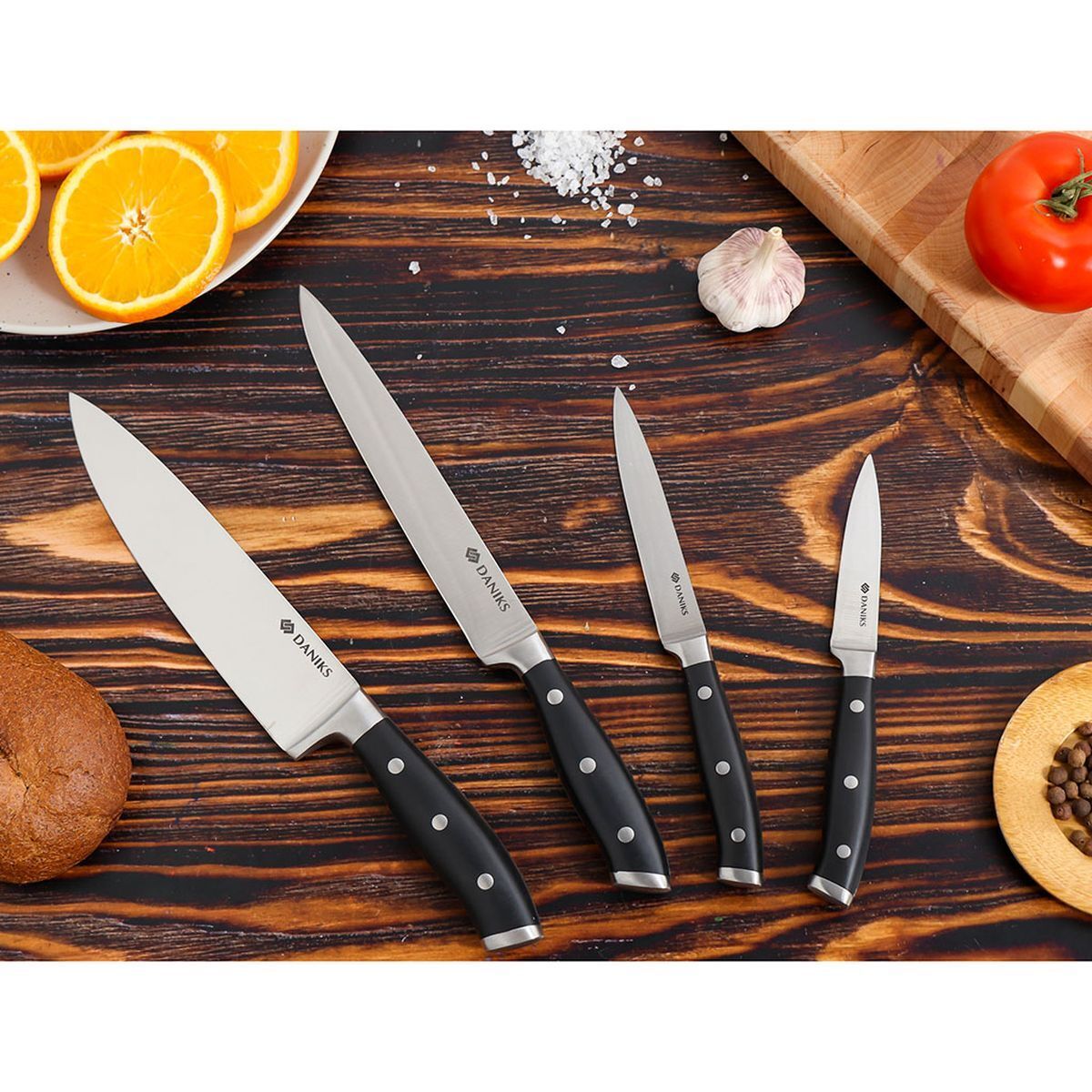 Daniks Black 161520-5 - нож для овощей, который имеет изящную форму и высокопрочное лезвие из нержавеющей стали. Он подойдет как для новичка, так и для настоящего профессионала. Прекрасное соотношение цены и качества.