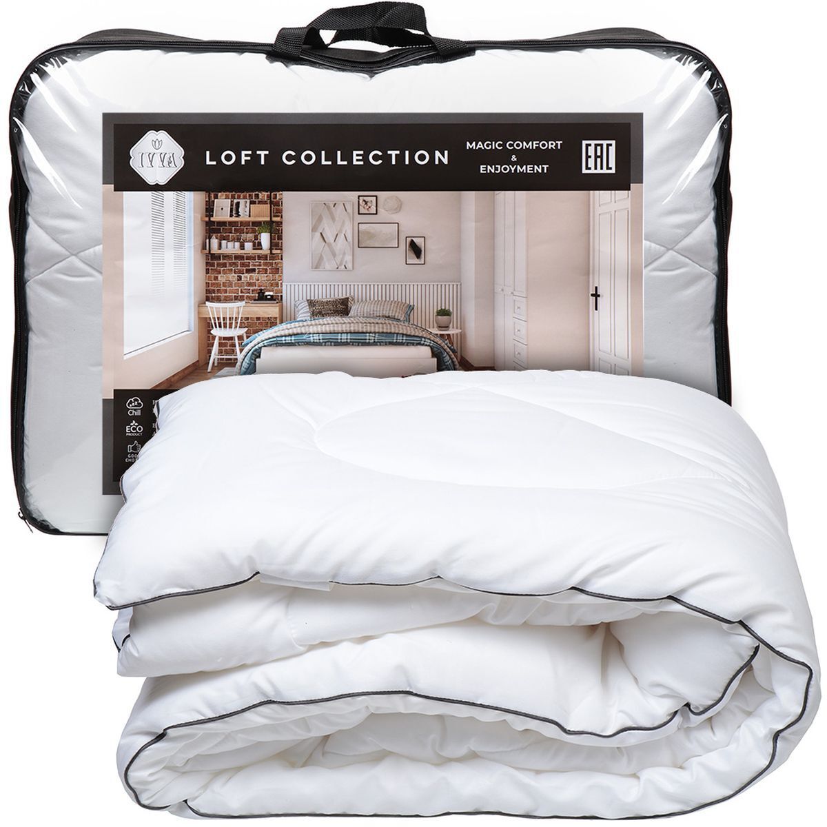 «Одеяло евростандарт, 200х220 см, Лофт, Файбер 100% полиэстер, 250 г/м2, всесезонное, чехол микрофибра 100% полиэстер, кант, IVVA» можно купить мелким, средним и крупным оптом по привлекательным ценам благодаря тому, что мы сотрудничаем с российскими и международными производителями напрямую, без посредников.