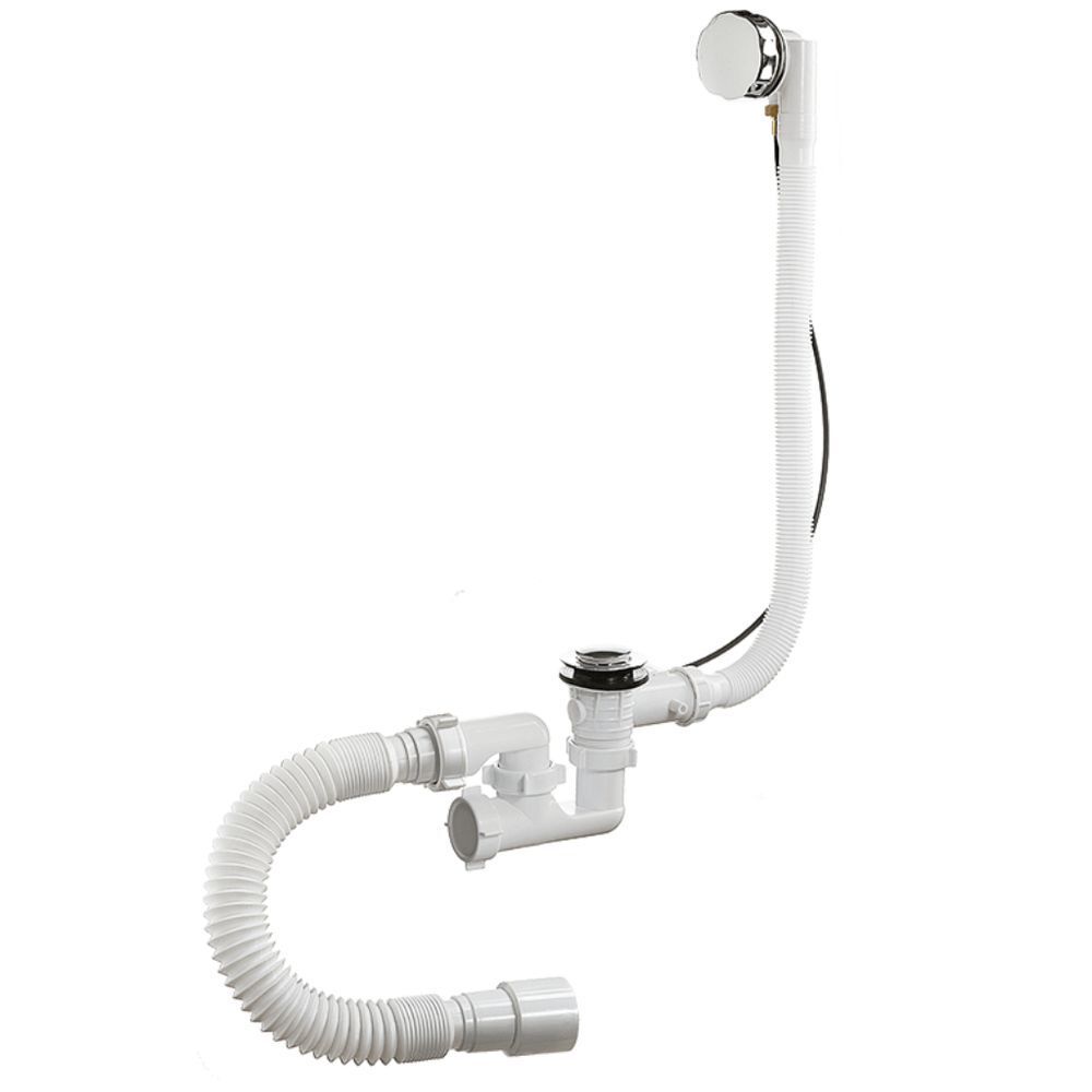 Сифон 1 1/2"х40, с полуавтоматическим сливом (латунь/хром)-переливом (латунь/хром), для ванн и глубоких душевых поддонов. Конструкция сифона позволяет прочищать сифон, не демонтируя его. Отвод в канализацию гибкая труба 40-40/50..