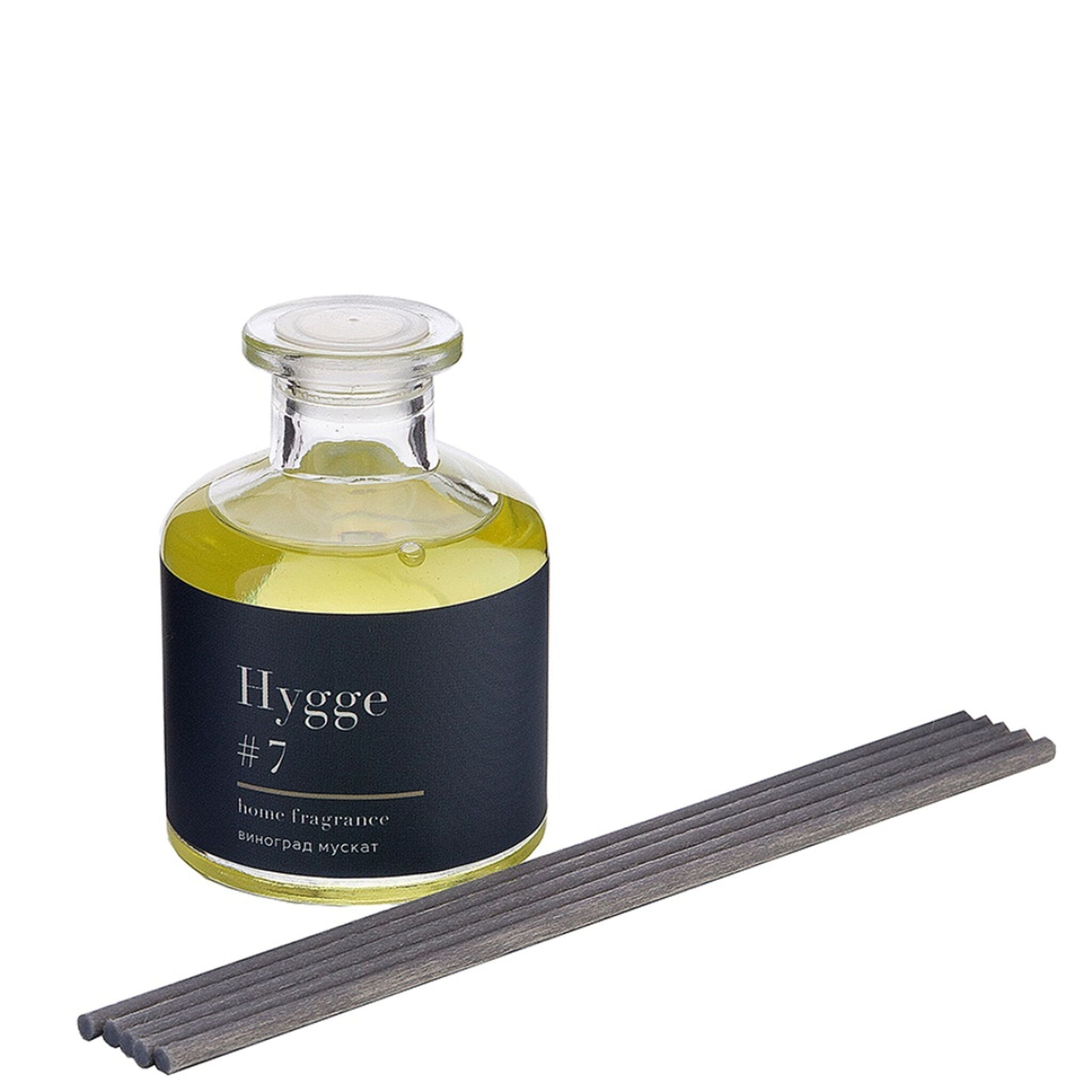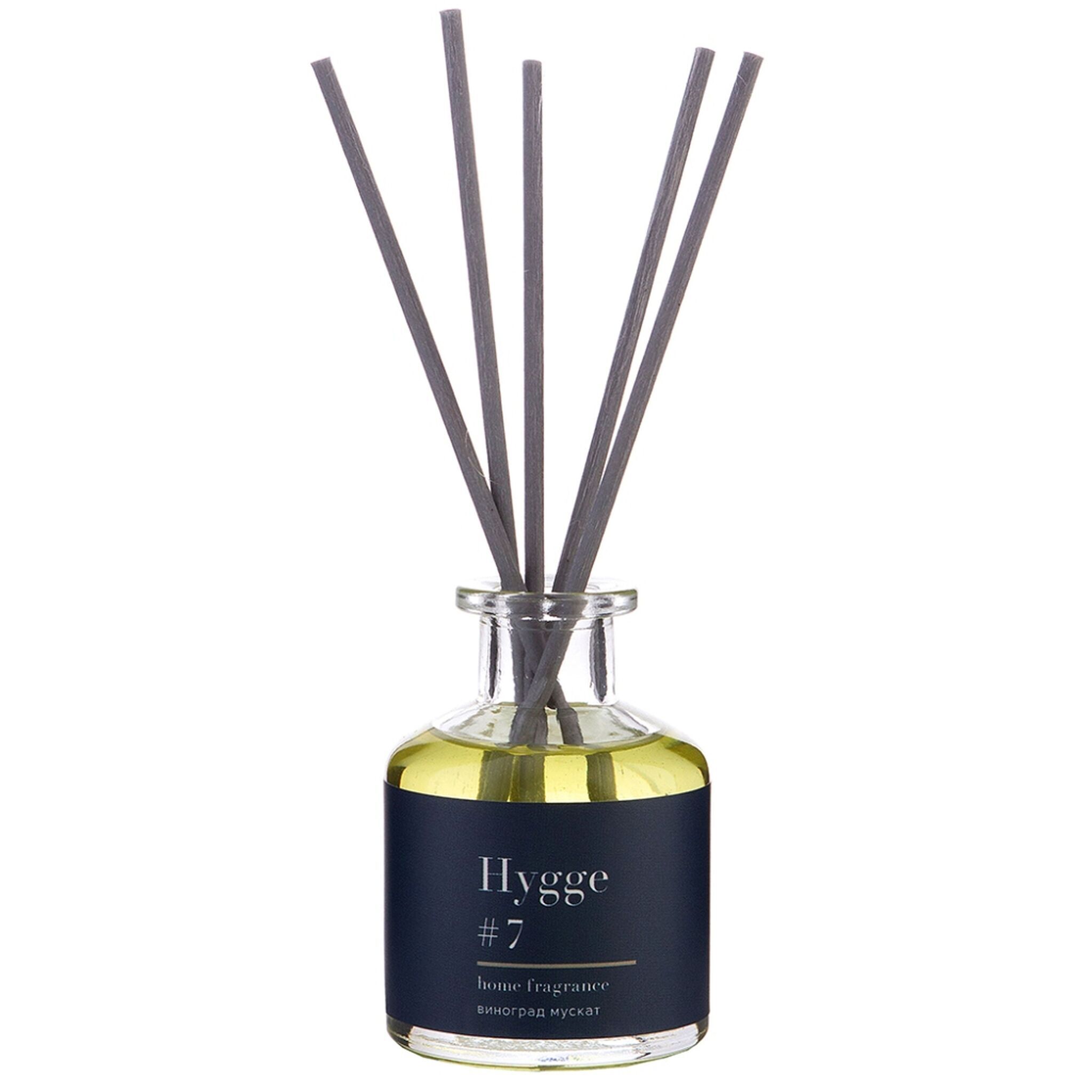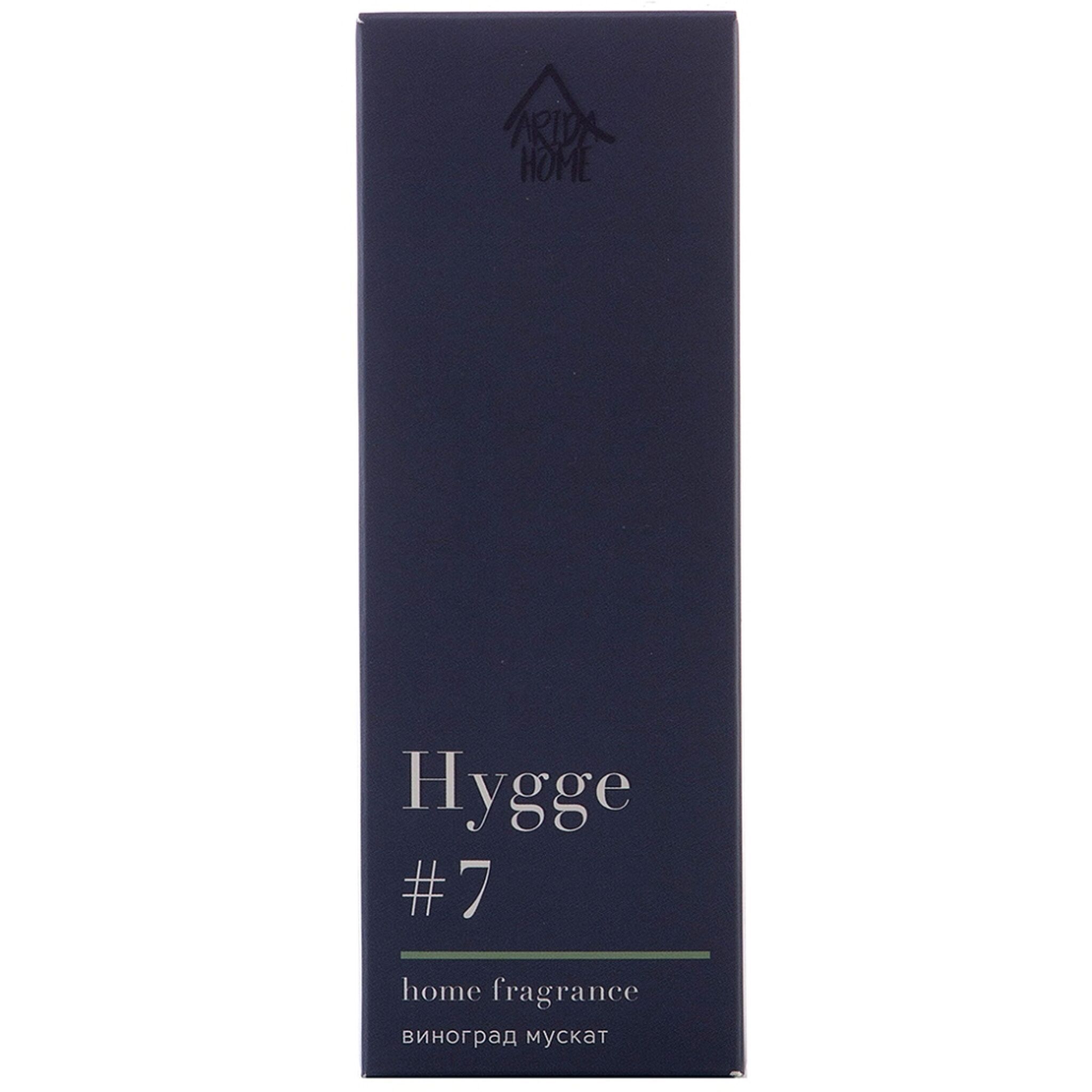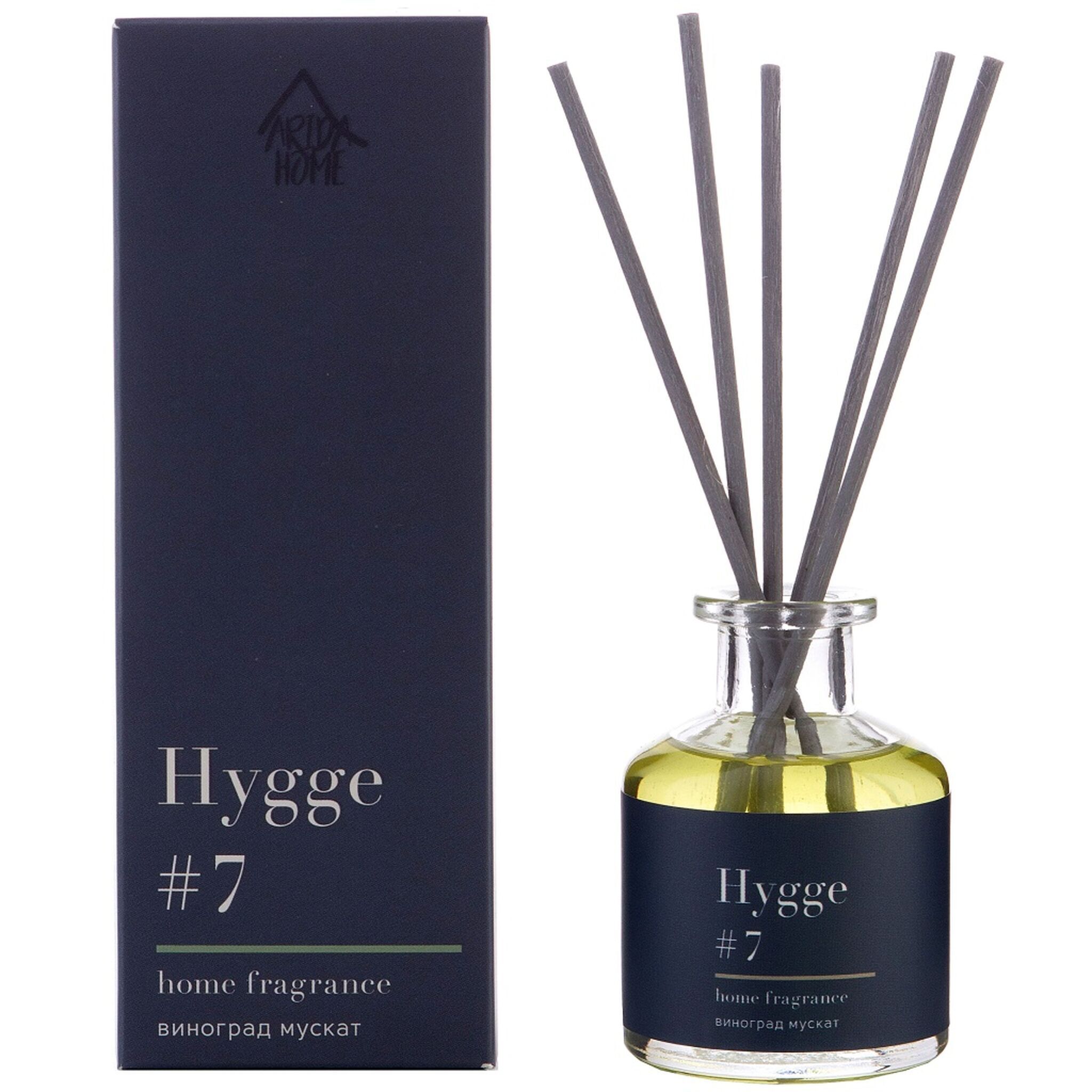 Аромадиффузор с палочками Arida Home Hygge #7 Виноград мускат — это безопасный экологически чистый и натуральный способ ароматизации помещения, является прекрасной альтернативой ароматизированным спреям. Стильный дизайн этого модного ароматического аксессуара украсит любой интерьер. Диффузор представляет собою изящную стеклянную емкость с ароматной жидкостью. В нее вставляются несколько длинных фибровых палочек. Постепенно, насыщаясь эфирными маслами, они распространяют аромат по всей комнате. Палочки важно применять сразу все и периодически переворачивать (1–2 раза в сутки). Флакона объемом 50 мл хватит на помещение площадью до 15 кв.м. Срок службы диффузора от 1,5 до 2 -х месяцев, в зависимости от места использования. В более влажных помещениях, срок использования сокращается.