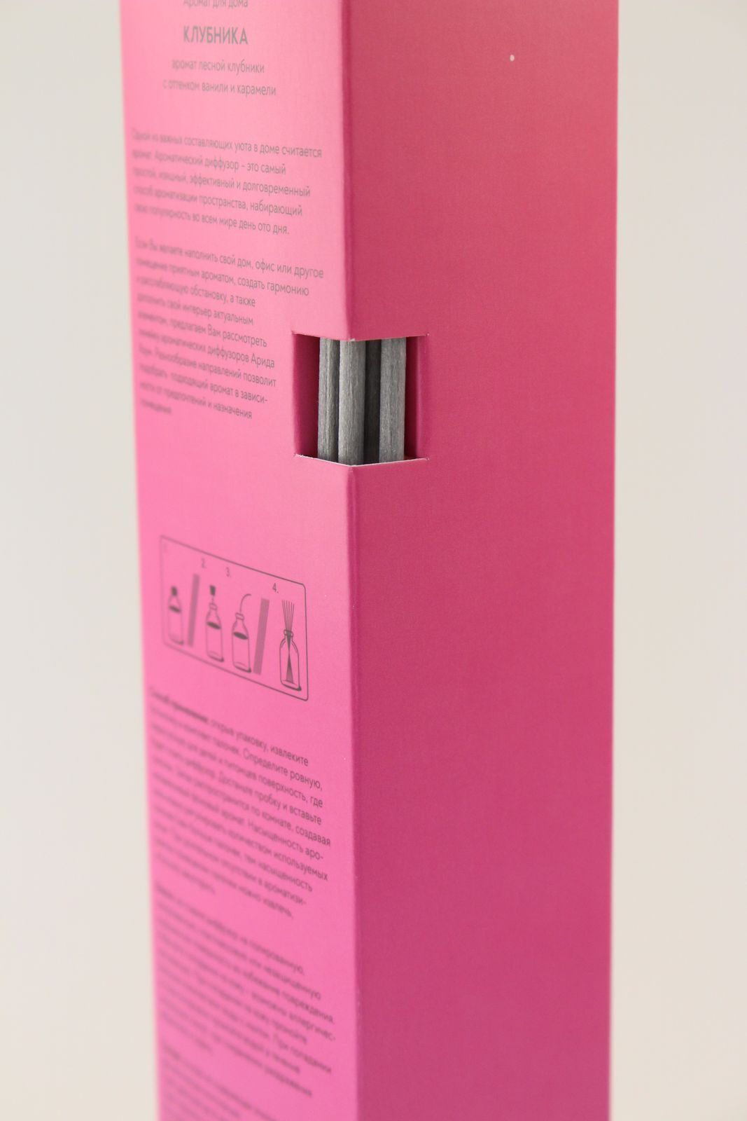 Аромадиффузор с палочками Arida Home, 50 мл, Клубника — это безопасный экологически чистый и натуральный способ ароматизации помещения, является прекрасной альтернативой ароматизированным спреям. Стильный дизайн этого модного ароматического аксессуара украсит любой интерьер. Диффузор представляет собою изящную стеклянную емкость с ароматной жидкостью. В нее вставляются несколько длинных фибровых палочек. Постепенно, насыщаясь эфирными маслами, они распространяют аромат по всей комнате. Палочки важно применять сразу все и периодически переворачивать (1–2 раза в сутки). Флакона объемом 50 мл хватит на помещение площадью до 15 кв.м. Срок службы диффузора от 1,5 до 2 -х месяцев, в зависимости от места использования. В более влажных помещениях, срок использования сокращается.