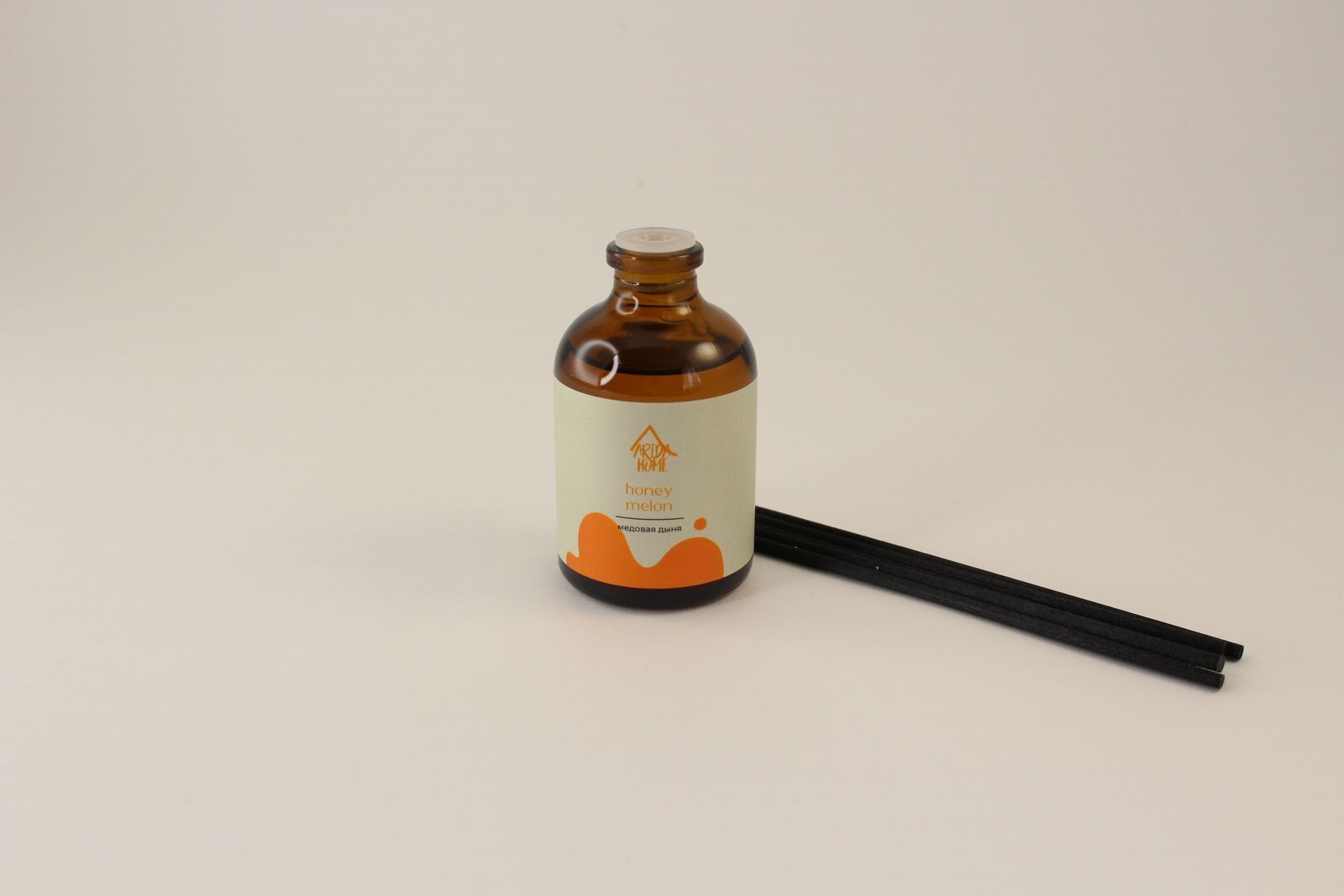 Аромадиффузор с палочками Arida Home, 50 мл, Медовая дыня — это безопасный экологически чистый и натуральный способ ароматизации помещения, является прекрасной альтернативой ароматизированным спреям. Стильный дизайн этого модного ароматического аксессуара украсит любой интерьер. Диффузор представляет собою изящную стеклянную емкость с ароматной жидкостью. В нее вставляются несколько длинных фибровых палочек. Постепенно, насыщаясь эфирными маслами, они распространяют аромат по всей комнате. Палочки важно применять сразу все и периодически переворачивать (1–2 раза в сутки). Флакона объемом 50 мл хватит на помещение площадью до 15 кв.м. Срок службы диффузора от 1,5 до 2 -х месяцев, в зависимости от места использования. В более влажных помещениях, срок использования сокращается.