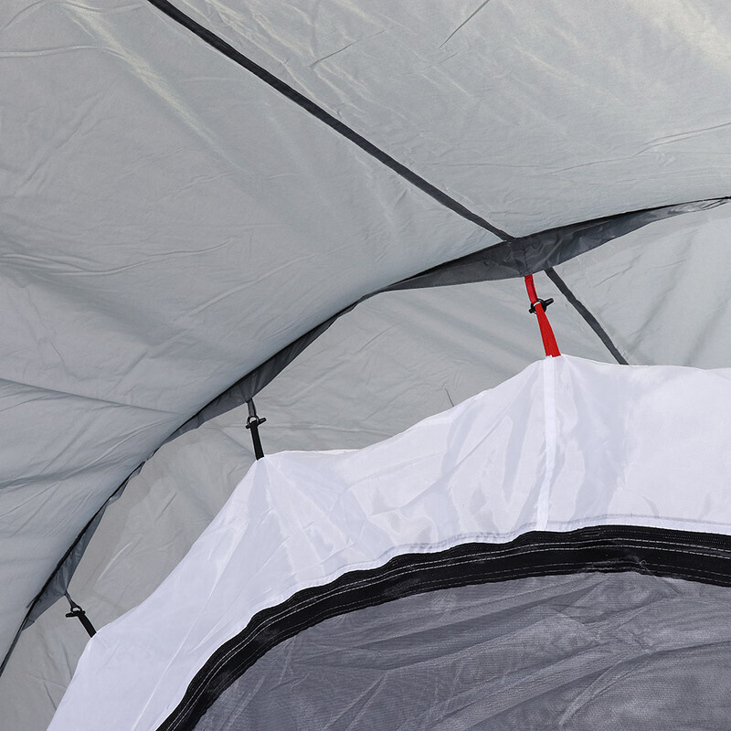 Легкая и прочная модель вмещает четырех человек. Для защиты от насекомых на входе предусмотрена противомоскитная сетка.