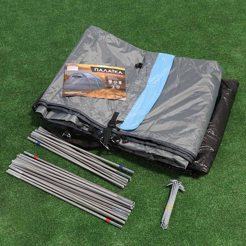 В комплекте: чехол для переноски, палатка, колышки и дуги в чехле.