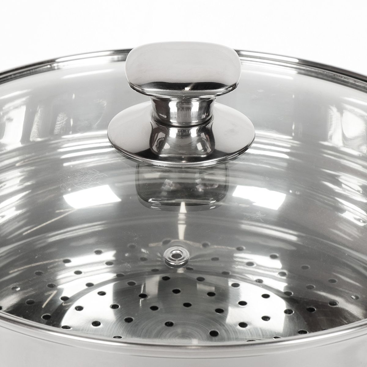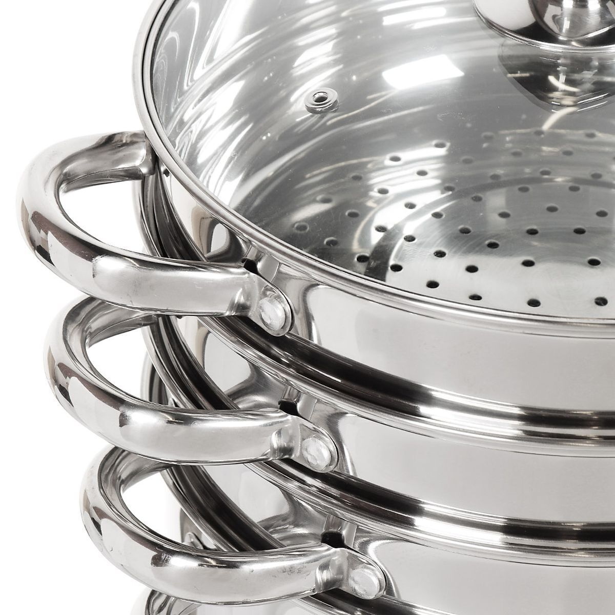 Четырехъярусная мантоварка изготовлена из нержавеющей стали с зеркальной полировкой. Изделие состоит из основной емкости-кастрюли, трех секций с отверстиями, и крышки. Специальный многоуровневый дизайн позволяет готовить до четырех различных блюд одновременно. Идеально подходит для национальных блюд как манты, котлеты, овощи, пельмени на пару и многое другое. Блюда, приготовленные на пару, являются самыми здоровыми и полезными, так как при их приготовлении не используется масло и жир. Они сохраняют все питательные вещества и витамины.
