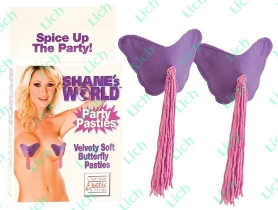 С этими пэстис вы легко сможете устроить любимому потрясающую ночь любви. Его сразит наповал эротический танец в вашем исполнении, завораживающая белизна вашего тела, а также эти пленительные фиолетовые бабочки с кистями. Они, прикрывая бюст, словно порхают при каждом движении. Так, будто готовы взлететь и обнажить соски в любую секунду! Крепятся на двусторонний скотч (в комплекте).