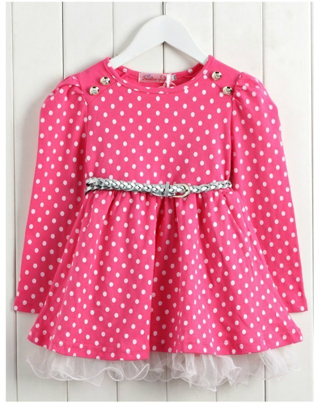 Цвет: Розовый Вид и состав ткани: Хлопок Длина рукава платья: Длинный Сезон: Весна-Осень Рисунок Ткани: Горох