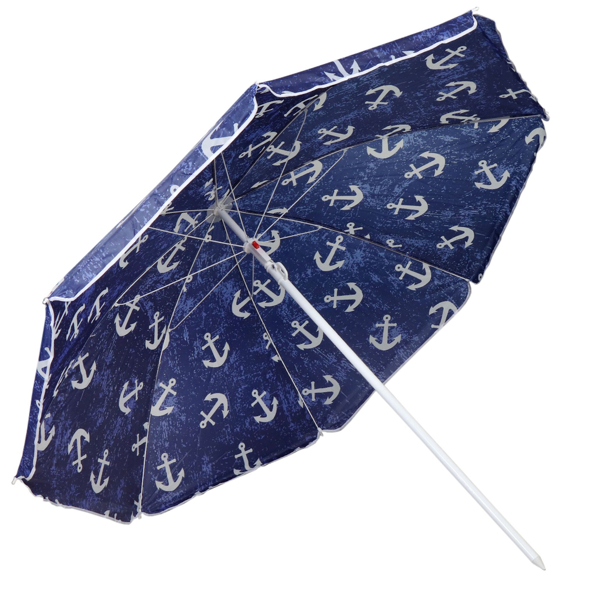 Зонт изготовлен из полиэстера и крепится к стальной стойке. Эстетичный и легкий, пляжный зонт станет приятным дополнением к Вашему отдыху. Этот яркий аксессуар оградит вас от вредных солнечных излучений и ожогов. Плотный материал и надежная конструкция прослужат вам не один сезон.