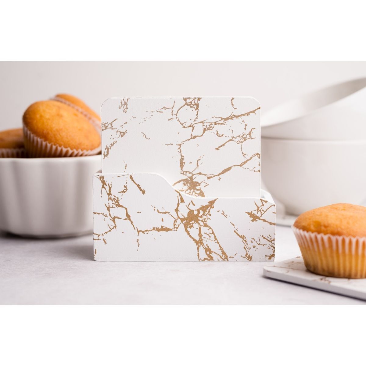 Подставка под горячее, дерево, 6 шт, 10х10 см, белый мрамор, Y6-2218