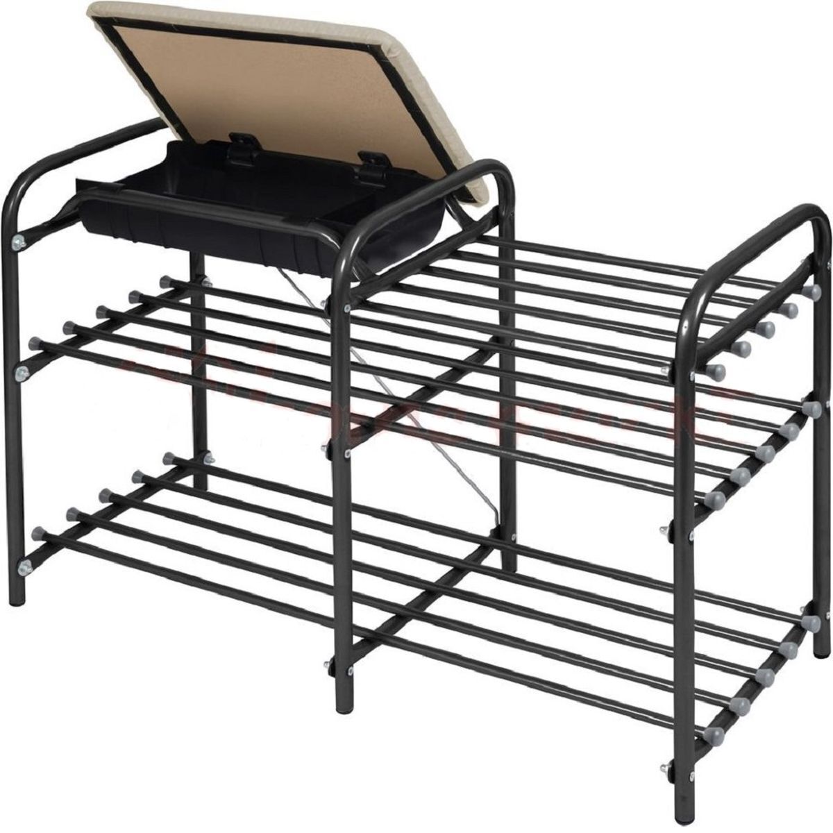 Удобная, компактная и функциональная этажерка для обуви с ящиком. Выполнена из металлических трубок с антикоррозионным напылением.