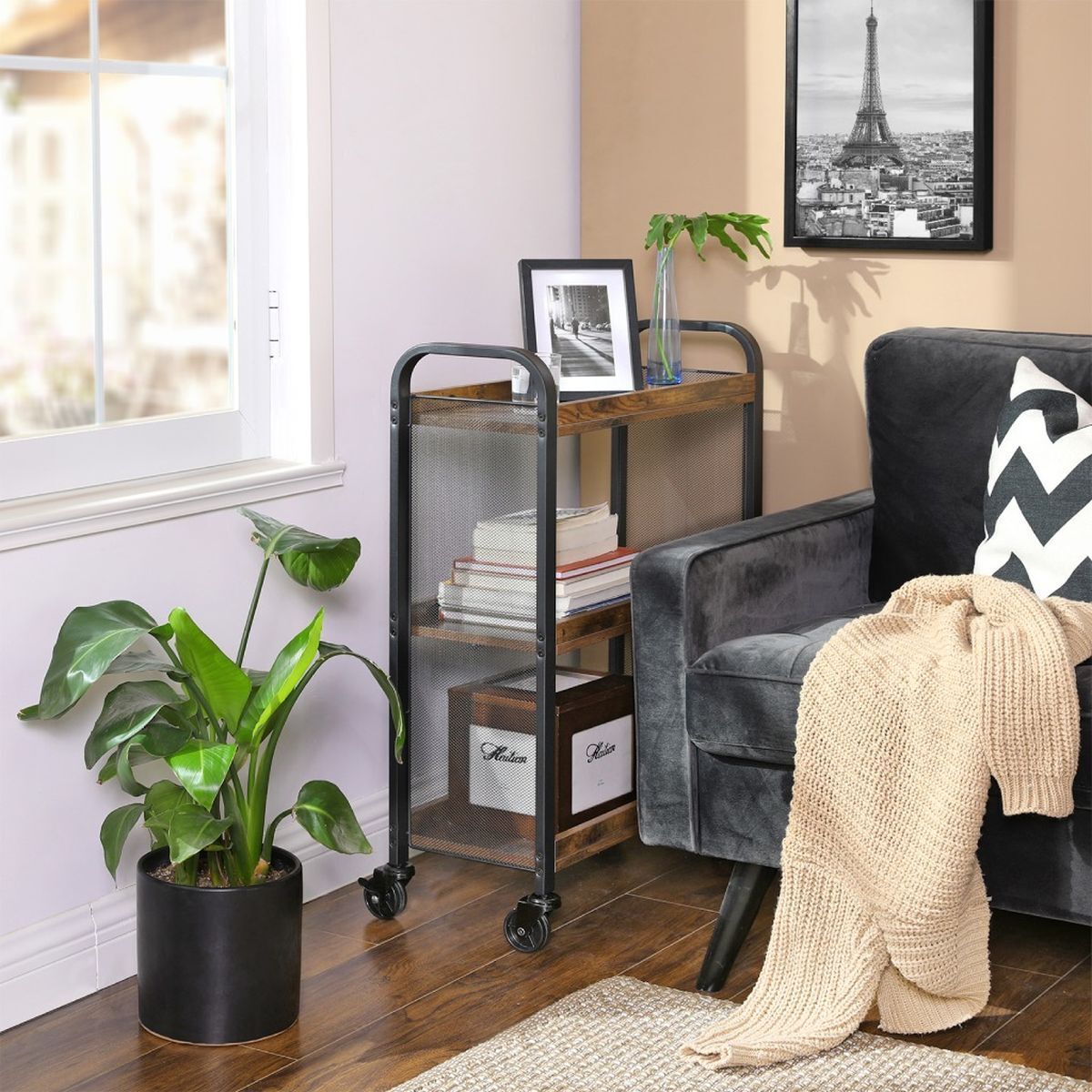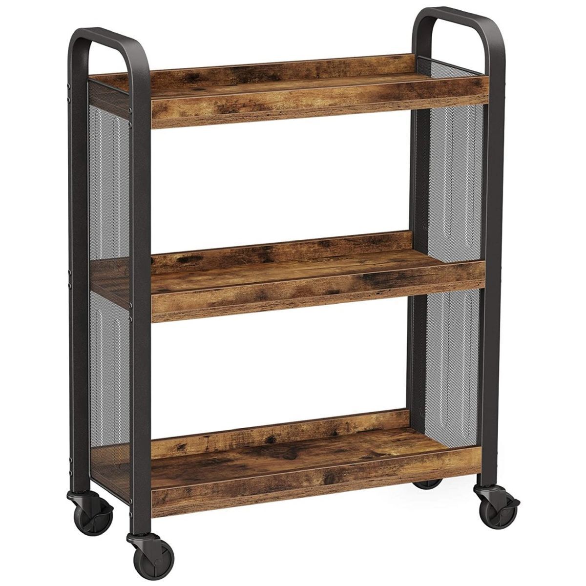 Ищете стильную функциональную тележку на колесиках? Эта полка идеально подходит вам! Деревянные полки в сочетании с металлической сеткой по бокам придают индивидуальность вашей хорошо продуманной современной кухне.