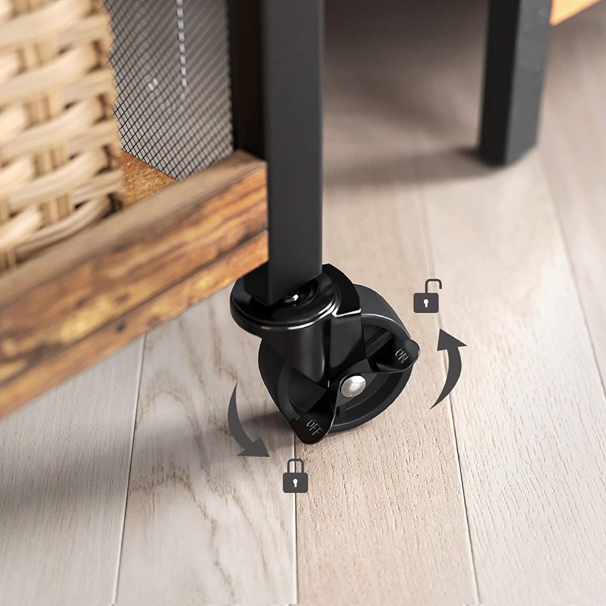Имеет 4 колесика, 2 из которых с тормозами, которые позволят вам свободно перемещать сервировочную тележку в центр кухни во время готовки, или использовать регулируемые ножки, чтобы удерживать кухонную полку неподвижно и устойчиво рядом с плитой.