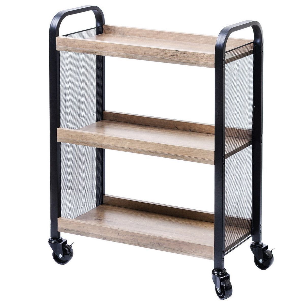 Ищете стильную функциональную тележку на колесиках? Эта полка идеально подходит вам! Деревянные полки в сочетании с металлической сеткой по бокам придают индивидуальность вашей хорошо продуманной современной кухне.