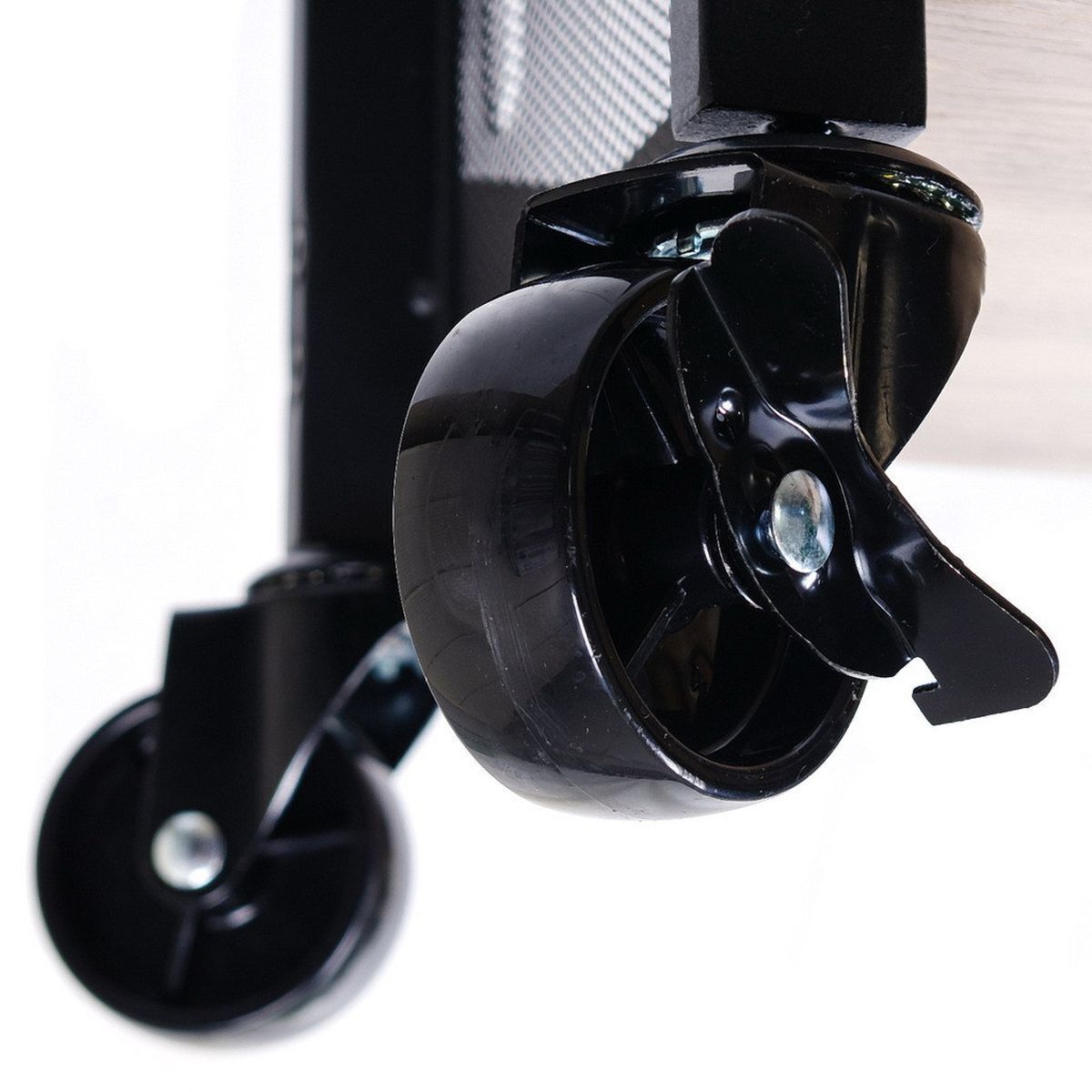 Имеет 4 колесика, 2 из которых с тормозами, которые позволят вам свободно перемещать сервировочную тележку в центр кухни во время готовки, или использовать регулируемые ножки, чтобы удерживать кухонную полку неподвижно и устойчиво рядом с плитой.