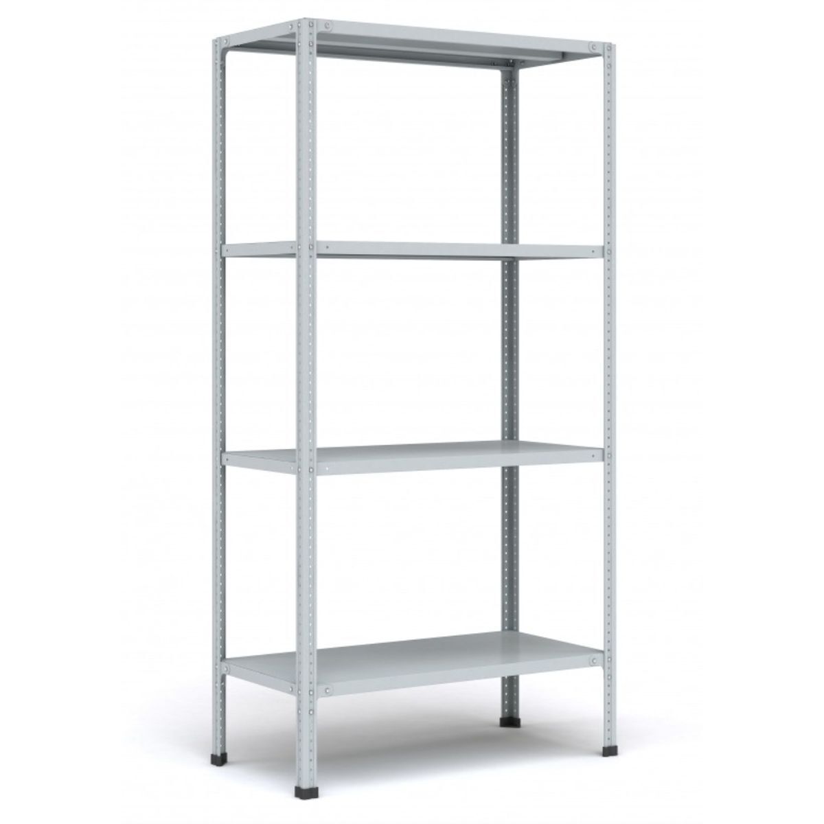 Стеллаж поставляется в разобранном виде и укомплектован 4-мя металлическими стойками, 4-мя металлическими полками и необходимым крепежом для сборки.