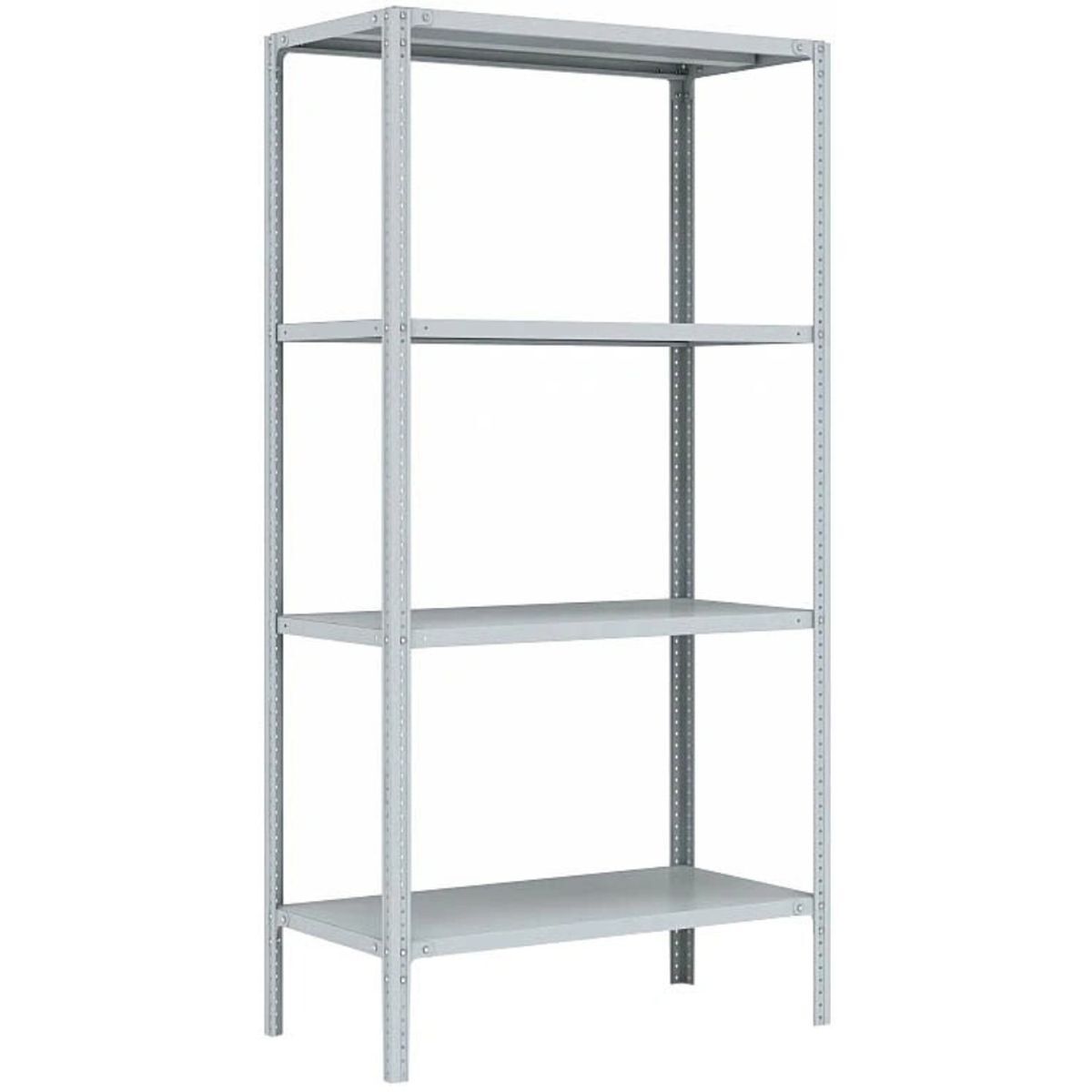 Металлический стеллаж МС-264/500 выполнен из стальных материалов высокого качества. Поверхность конструктивных элементов стеллажа покрыта порошковой краской светло-серого цвета. Конструкция стоек Металлического стеллажа МС-264/500 допускает монтаж полок на произвольном уровне. Технологические отверстия для крепления полок стеллажа расположены с шагом 25 mm. Стеллаж комплектуется полками, выдерживающими нагрузки до 100 кг на каждую полку. Максимальная нагрузка на весь стеллаж составляет 500 кг. Стеллаж поставляется в разобранном виде и укомплектован 4-мя металлическими стойками, 4-мя металлическими полками и необходимым крепежом для сборки.