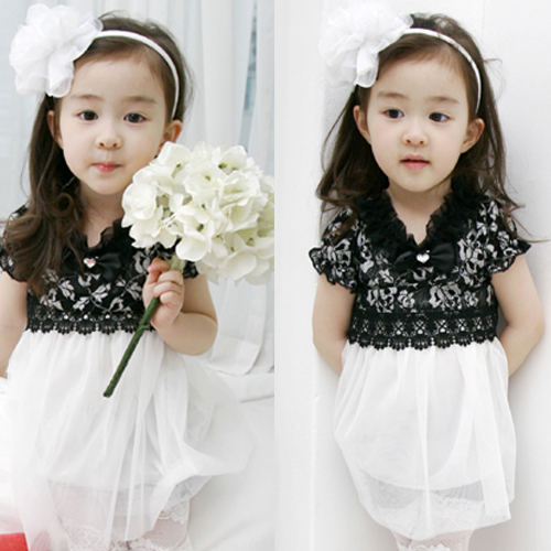 Платье детское черно-белое с кружевным верхом
