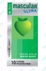 Эти презервативы станут для вашей пары настоящим откровением. Вам понравятся естественные ощущения от близости – заслуга особенно тонких стеночек и канавки у основания головки. Вас сразит яблочный аромат, создающий особое настроение. А ещё…зелёный цвет! Masculan Ultra – секс, как праздник!