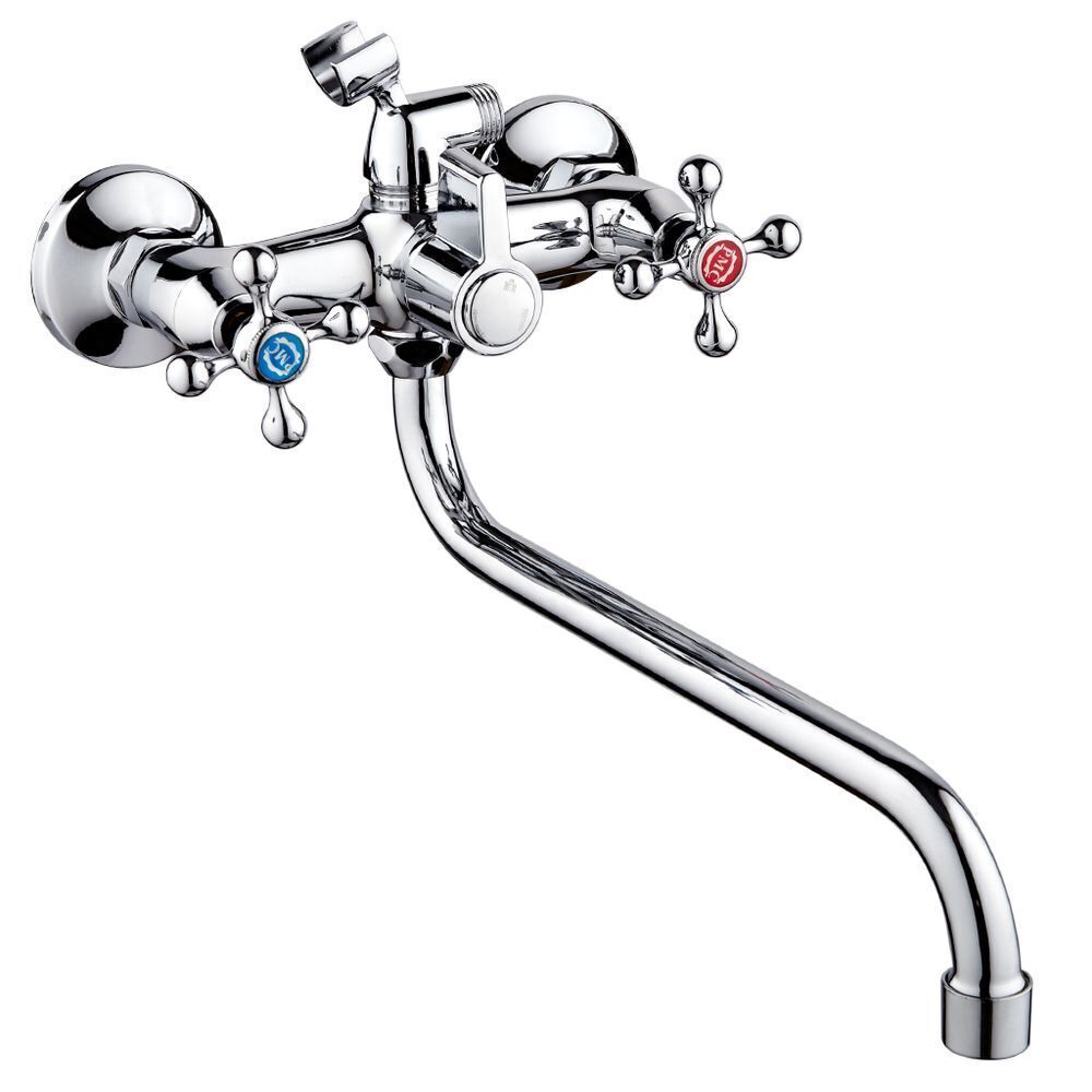 Двухрычажный смеситель для ванны "РМС" с длинным поворотным изливом отлично дополнит существующую сантехнику. Внутренняя конструкция гарантирует бесшумную работу и имеет долгий срок службы. Данная модель устойчива к коррозии, различным механическим повреждениям, перепадам температуры. Смеситель выполнен из силумина с керамическими пластинами.