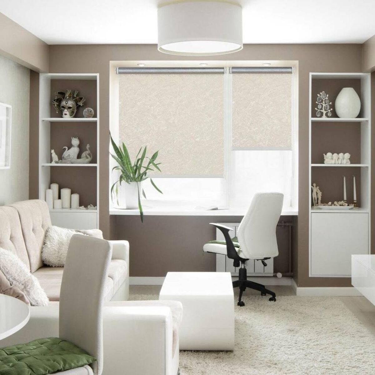 Штора рулонная регулирует освещение комнаты, опускается до любого желаемого уровня.