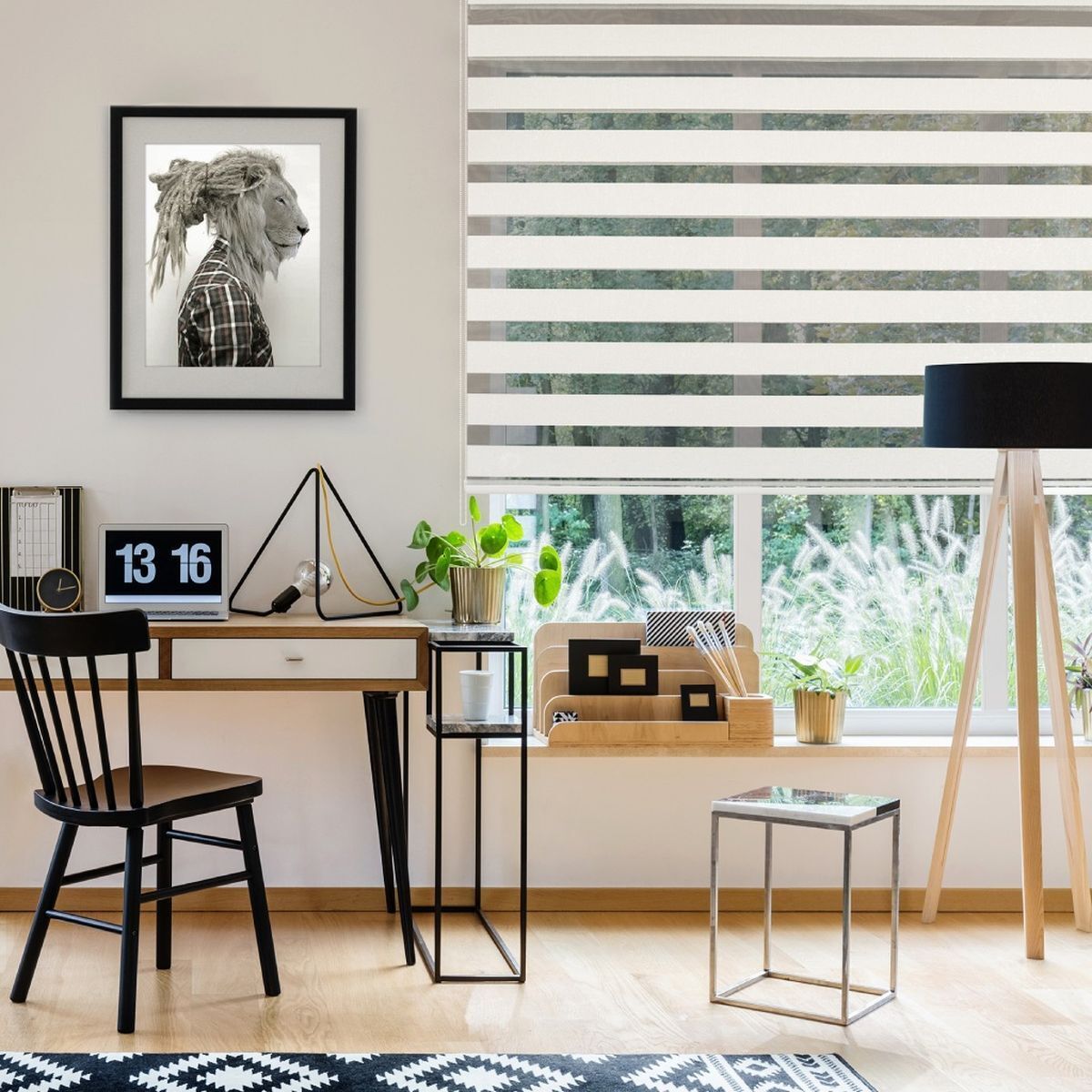 Рулонная штора "День-Ночь" - это отличное решение в оформлении окна. Рулонная штора состоит из ткани, с чередующимися полосами из прозрачного и непрозрачного материала, расположенной в два слоя. Уникальность двойной рулонной шторы заключается в её универсальности. Она имеет и привлекательный внешний вид, и легка в управлении, и, кроме того, даёт возможность контролировать интенсивность солнечного света, непосредственно на самом изделии.