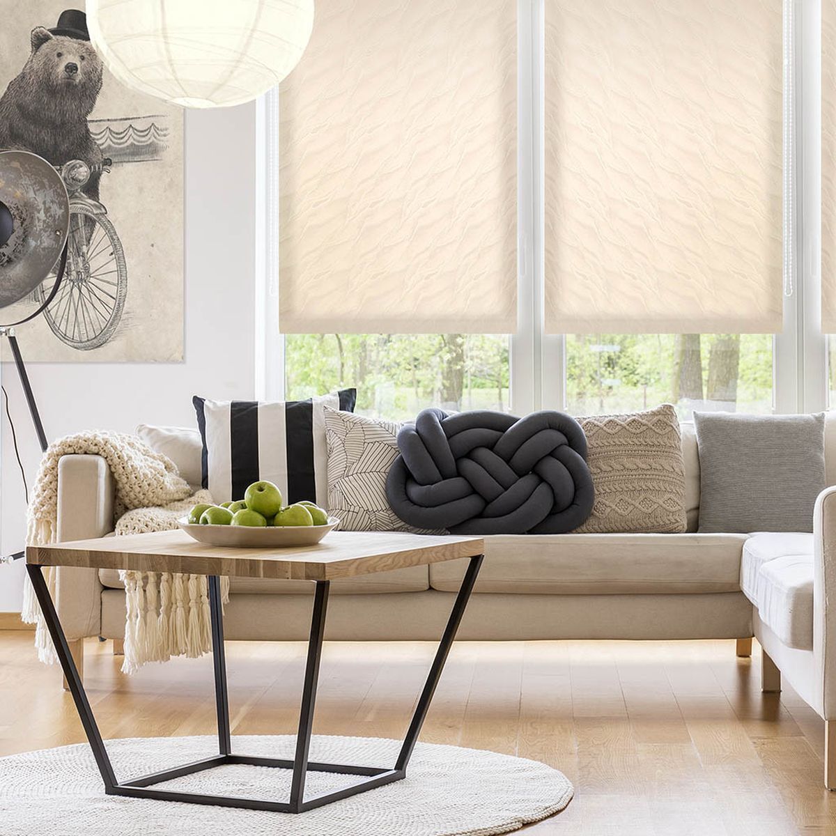 Штора рулонная регулирует освещение комнаты, опускается до любого желаемого уровня.