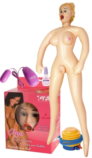 Надувная кукла Ольга с реалистичными вагиной, анусом и ртом. Рост 140-150 см. Комплектуется вибратором для вагины и ануса, а также помпой для удобного надувания куклы и лубрикантом. В целях гигиены, а также для простоты ухода за изделием и увеличения срока его службы, рекомендуем использовать его с презервативом и лубрикантами, не передавать другим лицам, не использовать при повреждении кожных покровов, хранить при комнатной температуре, избегать попадания прямых солнечных лучей, после использования промыть тёплой водой с мыльным раствором. Батарейки в комплект не входят. Торговая марка интимных товаров TOYFA (сокращённо от TOY FACTORY или ФАБРИКА ИГРУШЕК) включает в себя лучшие товары от нескольких фабрик секс-товаров Китая и Гонконга. Благодаря прямым контактам с производителями, мы имеем возможность контролировать качество поставляемых товаров, выбирать только лучшие образцы, пользующиеся особой популярностью у наших покупателей. Яркая, красочная упаковка товаров TOYFA полностью русифицирована и соответствует всем требованиям российского законодательства. Вся продукция имеет все необходимые сертификаты. Ну и самое главное отличие от интимных товаров, поставляемых из Европы и США (которые, кстати, произведены на тех же фабриках) – это низкая цена! Благодаря прямым поставкам от производителя, мы можем предложить очень интересные цены на товары под маркой TOYFA, что позволяет нашим клиентам насладиться интимными радостями, не переплачивая за иностранный бренд. Оптовые продажи интимных товаров TOYFA.