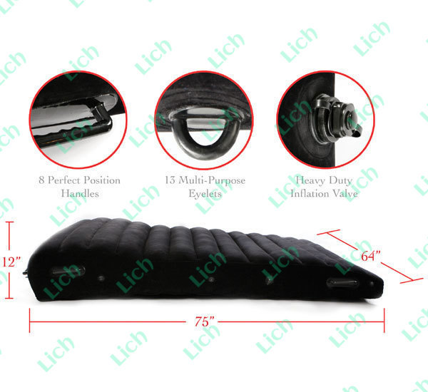 Теперь Вы можете мгновенно преобразить любую комнату в эротическую площадку с надувным матрасом королевского размера!!! Кровать многофункциональна. Этот двуспальный надувной матрас изготовлен из винила и имеет 8 позиций ручки и 13 многоцелевых позиций фиксаторов ремней. Размеры: 162.5 х 190.5 х 30.4 см.
