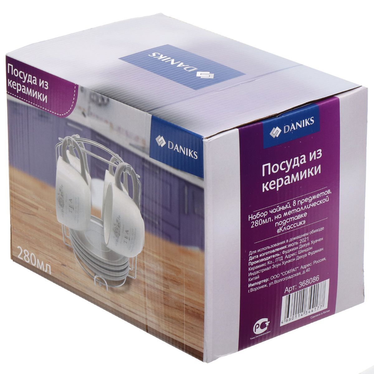 Набор чайный керам, 8 пр, 4 перс, 280 мл, металл подставка, Daniks, Классик, HC127-N1