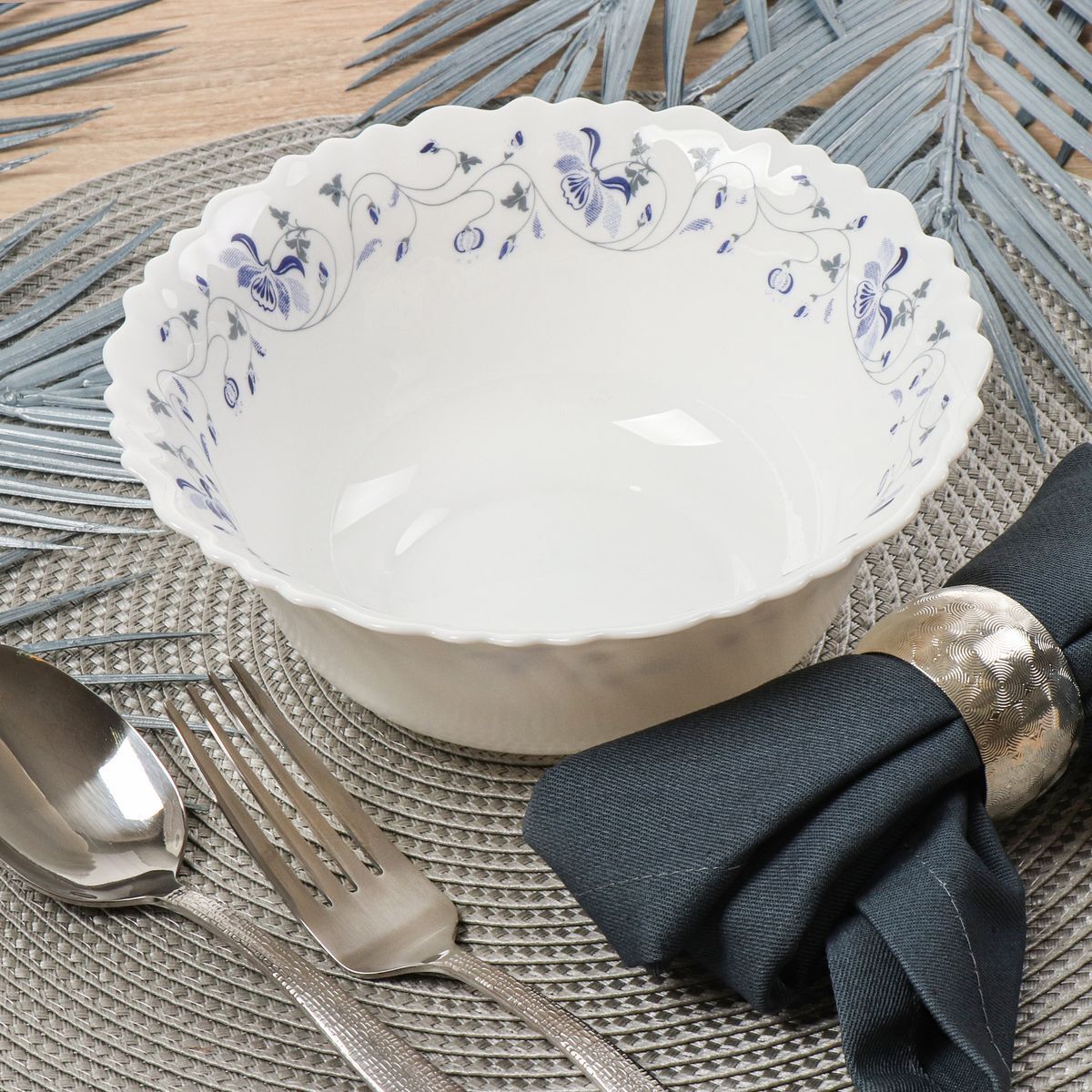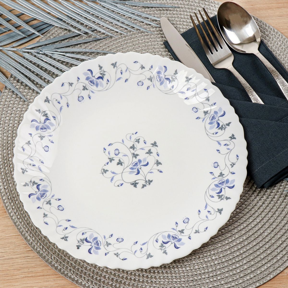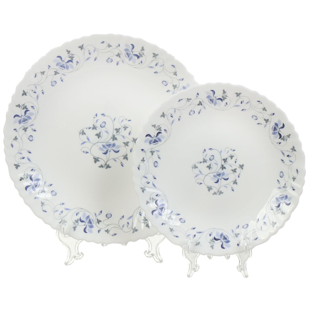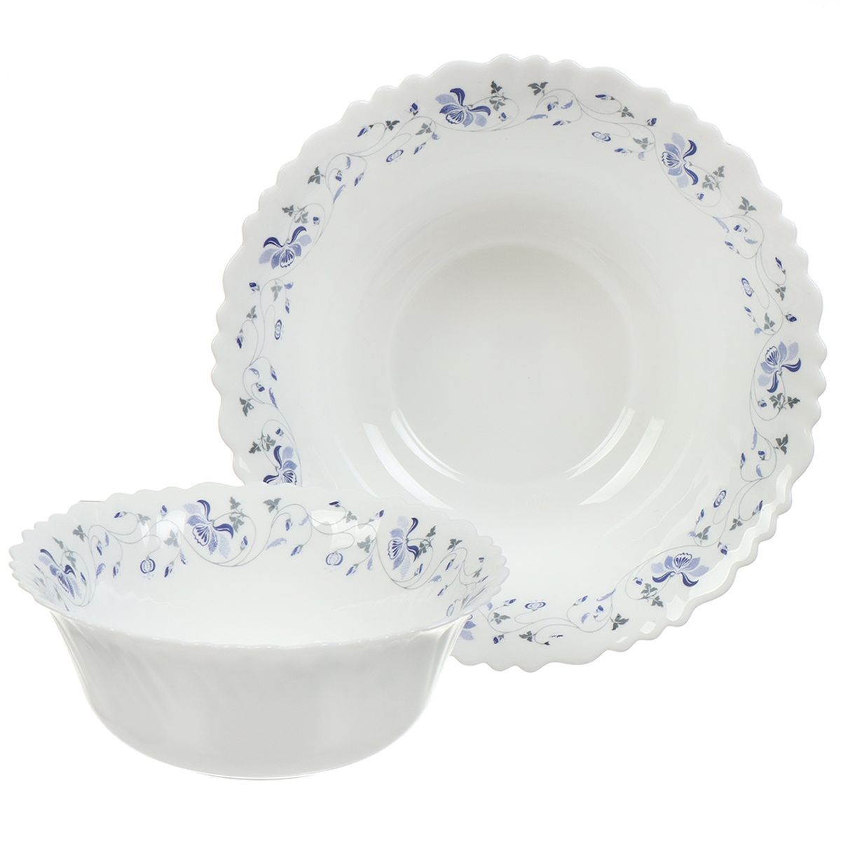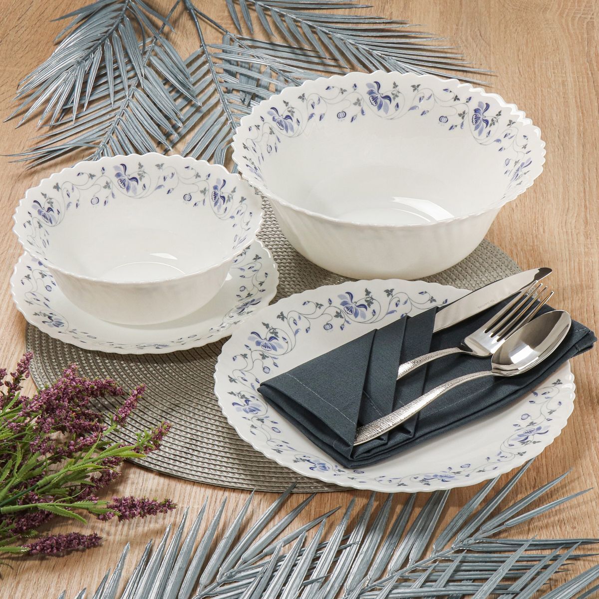 Состав набора: 6 тарелок обеденных 22 см, 6 тарелок десертных 19 см, 6 малых салатников 18 см, салатник большой 23 см.