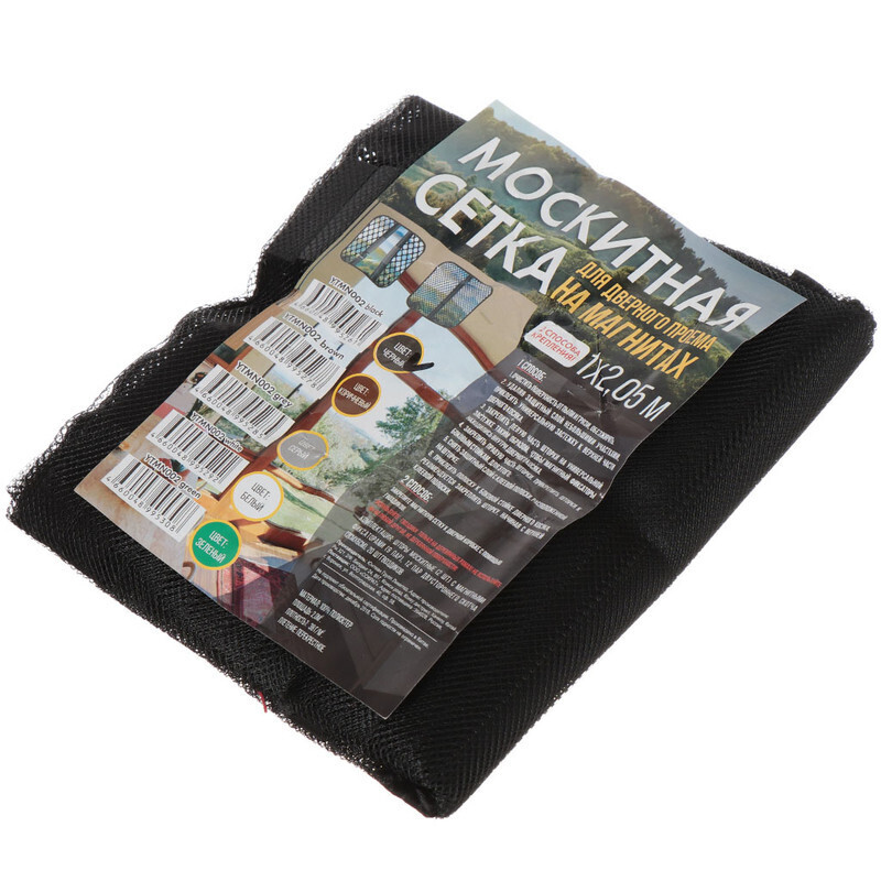 «Сетка москитная для двери, 1х2.05 м, на магнитах, липучка, черная, YTMN002, пакет»