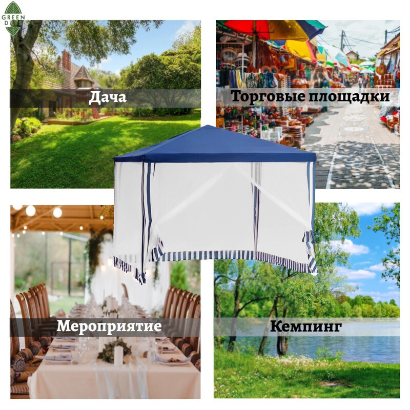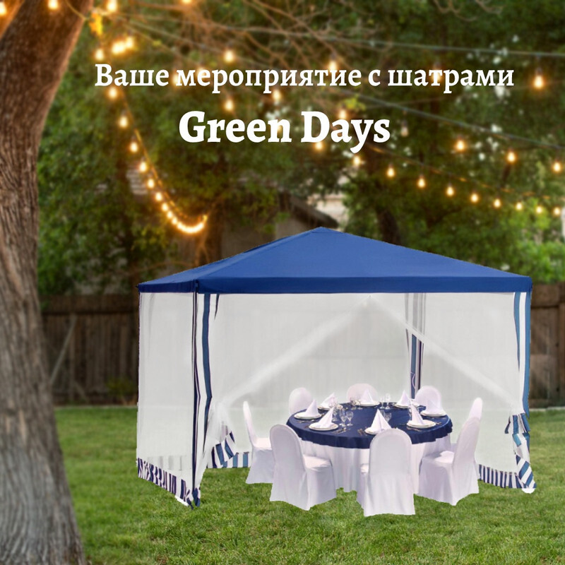 Отдохнуть на даче, отправиться на пикник или отметить значимое событие с удобством, помогут шатры Green Days, являющиеся бюджетной и интересной альтернативой беседок. Габариты шатров позволяют с комфортом разместиться большой группе людей.