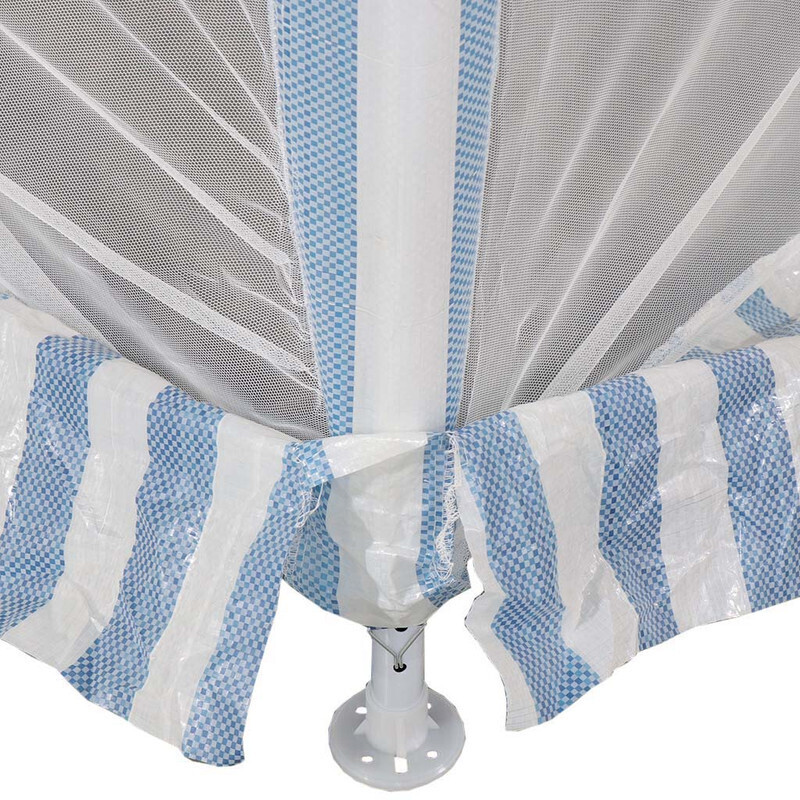 Прочный стальной каркас устойчиво фиксируется на любой поверхности. Легко собирается путем соединения между собой труб защелками на концах. Конструкция дополнительно закрепляется при помощи колышков и оттяжек. Модель имеет один вход, закрывающийся на молнию с двойным бегунком. Стенки шатра оборудованы москитной сеткой, что обеспечивает обзор и хорошую вентиляцию, и позволяет отдыхать на берегах водоемов, не опасаясь насекомых. Установка таких павильонов занимает не более часа. Эксплуатация возможна уже сразу после установки. Складные шатры предназначены для временного использования, в зависимости от погодных условий.
