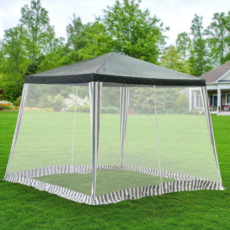 Под таким павильоном можно расположить стол со стульями или установить его над бассейном, детской песочницей, чтобы защитить малышей от перегрева. Кемпинговый тент оптимален для проведения мероприятий на открытом воздухе.