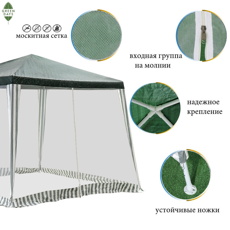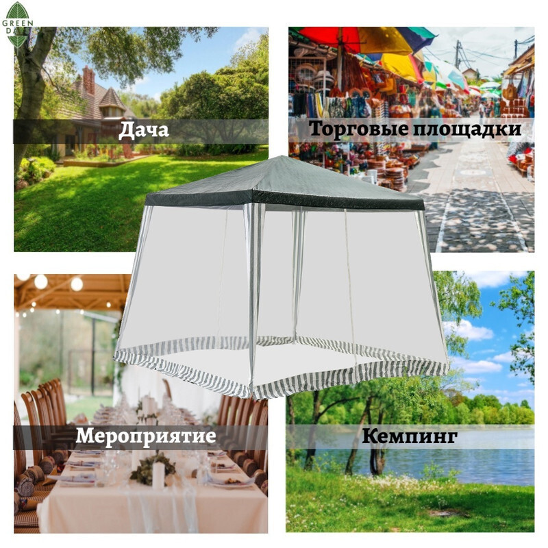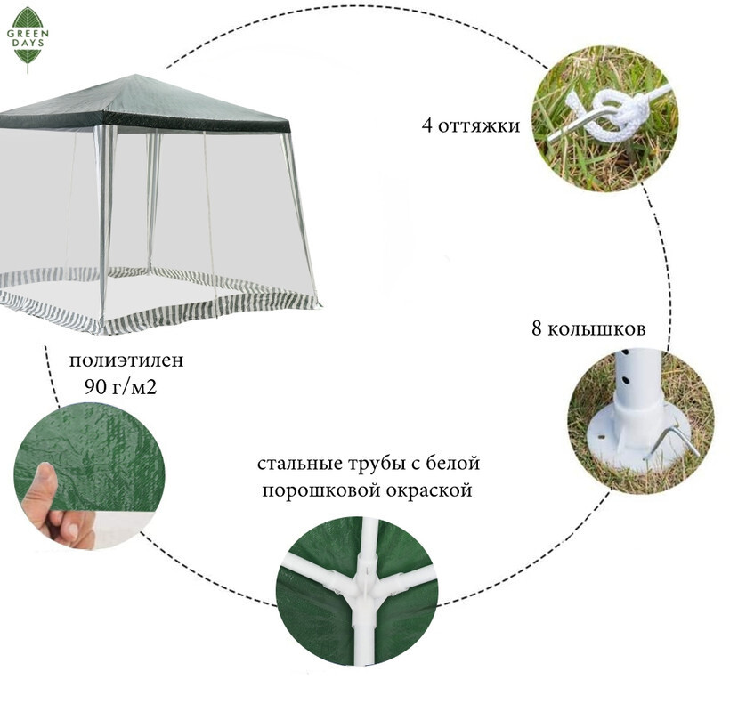 Отдохнуть на даче, отправиться на пикник или отметить значимое событие с удобством, помогут шатры Green Days, являющиеся бюджетной и интересной альтернативой беседок. Габариты шатров позволяют с комфортом разместиться большой группе людей.