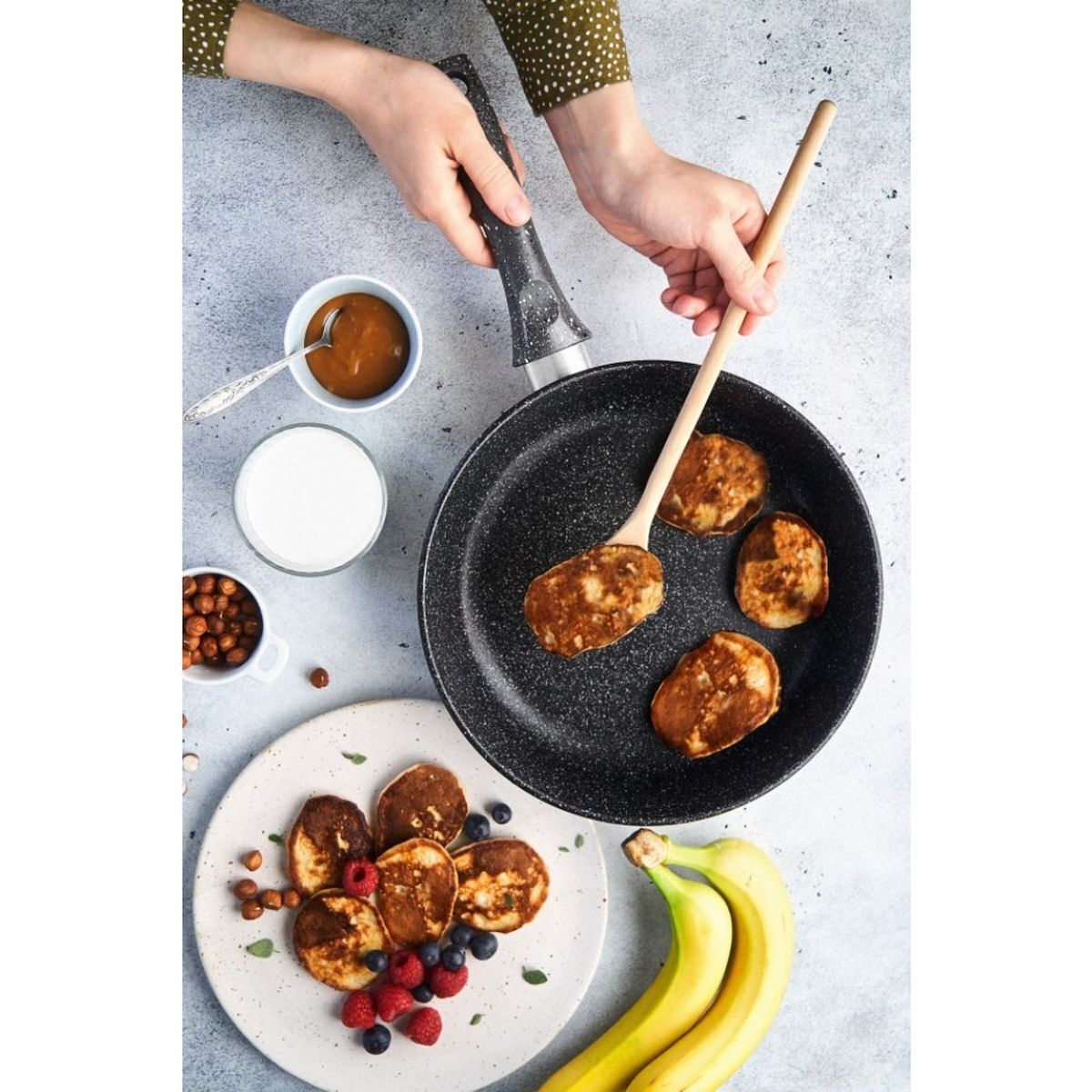 Кроме того покрытие отличается высокой износостойкостью — оно выдерживает более 3500 условных циклов приготовления пищи, а шероховатость поверхности способствует равномерному распределению масла по поверхности сковороды и исключает его стекание.