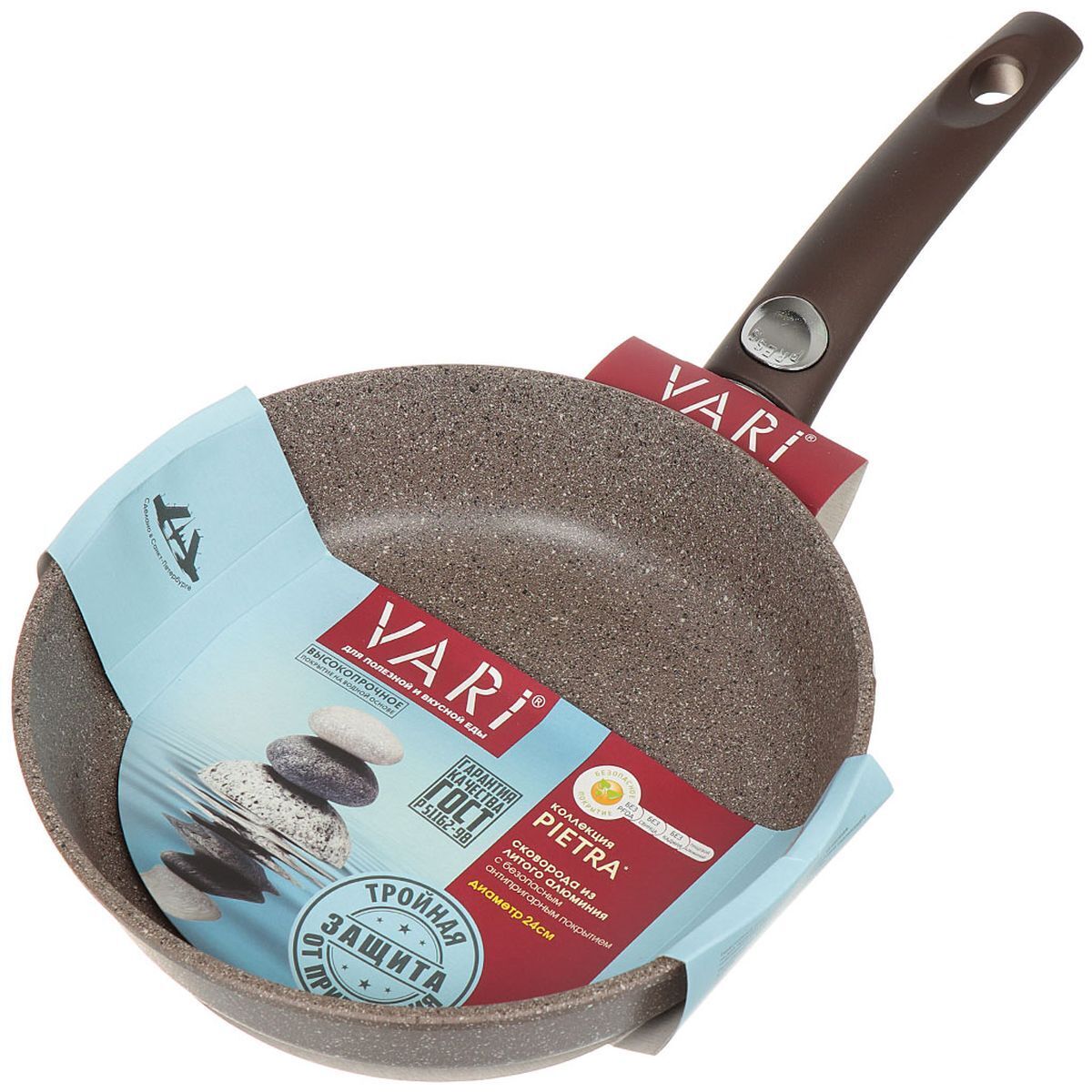 «Сковорода алюминий, 24 см, антипригарное покрытие, Vari, Pietra, коричневая, BR31224, съемная ручка» можно купить мелким, средним и крупным оптом по привлекательным ценам благодаря тому, что мы сотрудничаем с российскими и международными производителями напрямую, без посредников.