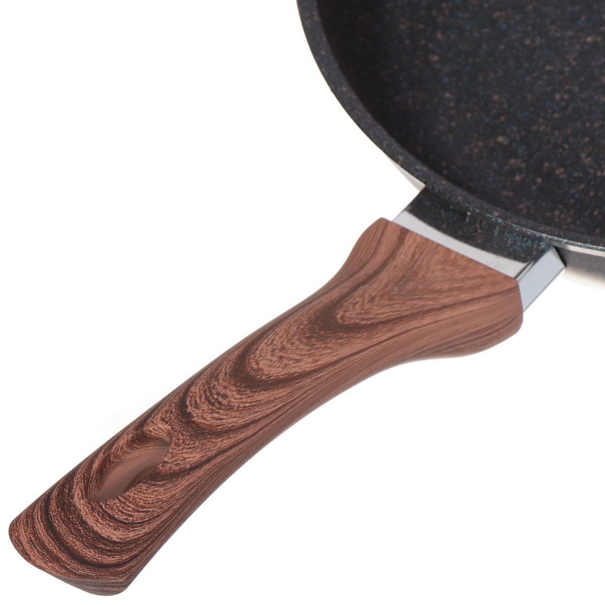 Ручка из бакелита (термостойкой пластмассы). Основные плюсы в том, что такие ручки не нагреваются, не скользят, обеспечивая удобный хват. Выдерживают нагрев до 150°С.