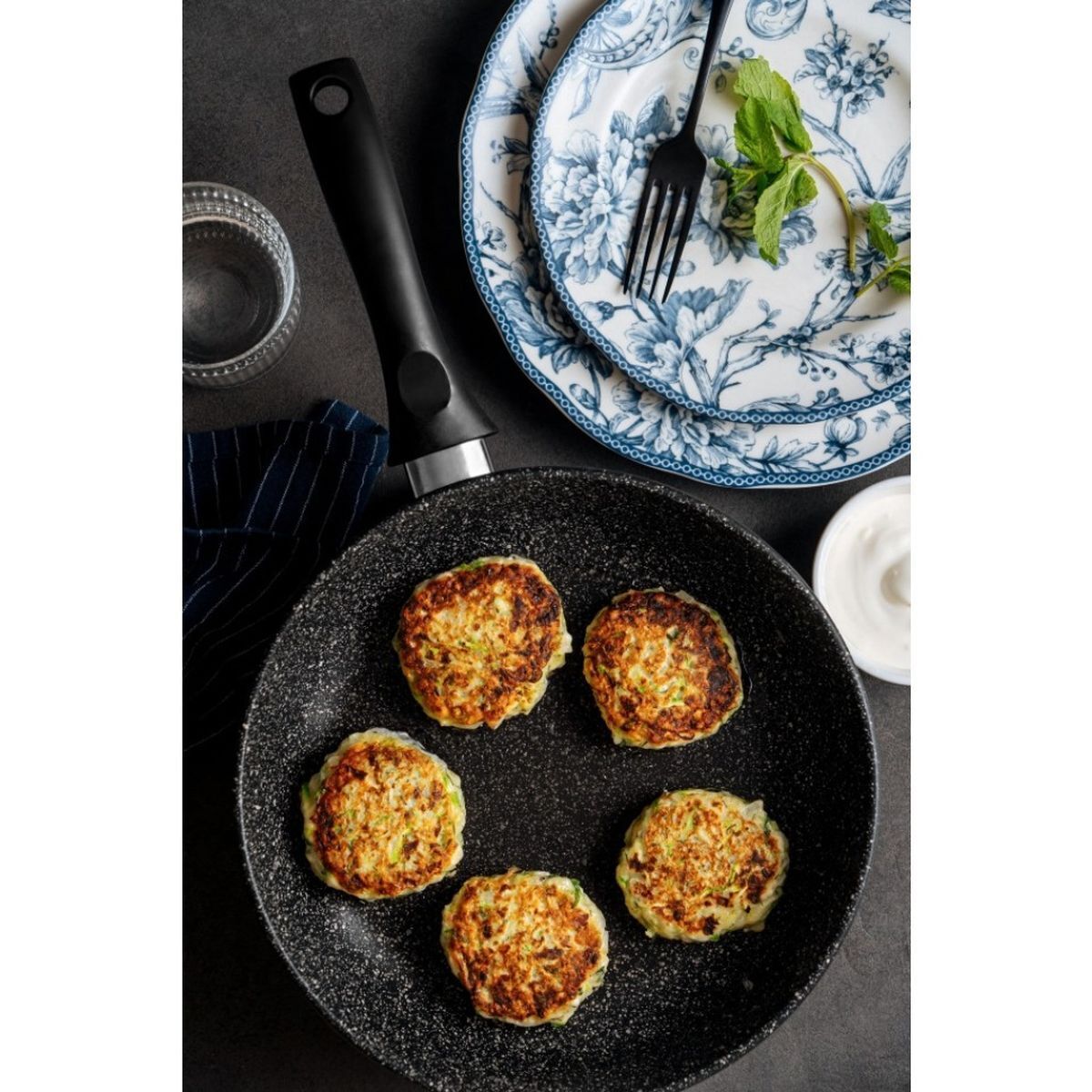 Энергия природы, прочность камня и уникальные современные технологии объединились в серии «Природные минералы». При разработке сковороды линии «АЛТАЙ» использовалась особенная технология нанесения антипригарного материала, придающая эффект натурального камня. Высококачественное многослойное покрытие позволяет готовить любимые блюда без добавления масла, при этом сохранять сочность и полезные свойства продуктов в процессе обжаривания. Посуда выполнена с использованием современной технологии «Full Induction», вся поверхность индукционного диска обладает магнитопроводящими свойствами, благодаря чему сковороды лучше распознаются датчиками индукционных плит, а также обеспечивает разогрев посуды за 70 секунд до идеальной температуры для жарки. Многофункциональная и удобная в эксплуатации сковорода. В ней можно жарить, тушить и томить, она отлично подходит для приготовления гарниров и блюд с большим количеством ингредиентов.