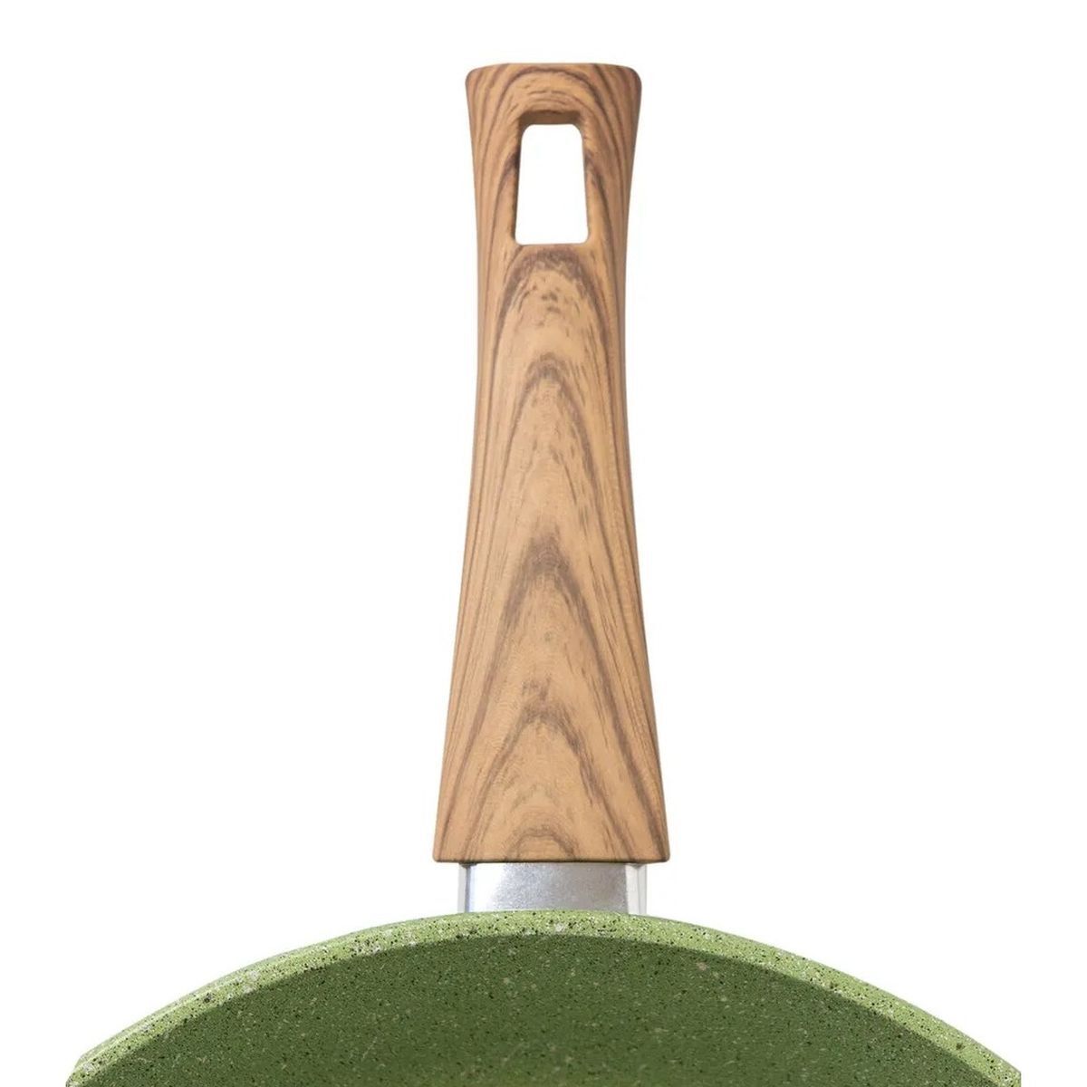 Литая сковорода диаметром 26 см из современной экологичной коллекции посуды "Сила природы" воплотит атмосферу природной натуральности и свежести на Вашей кухне. Качественное антипригарное покрытие Quantanium нанесено в три слоя и не допускает пригорания продуктов, позволяя готовить без масла. Покрытие не содержит PFOA (перфтороктановую кислоту), поэтому безопасно для человека. Изделие изготовлено из толстостенного алюминия, который быстро раскаляется и долго держит тепло. Массивное дно равномерно распределяет жар по всей поверхности, обеспечивая равномерную прожарку. С наружной стороны сковороды нанесено жаростойкое силиконовое покрытие, предохраняющее стеклокерамическую плиту от повреждений и загрязнений.