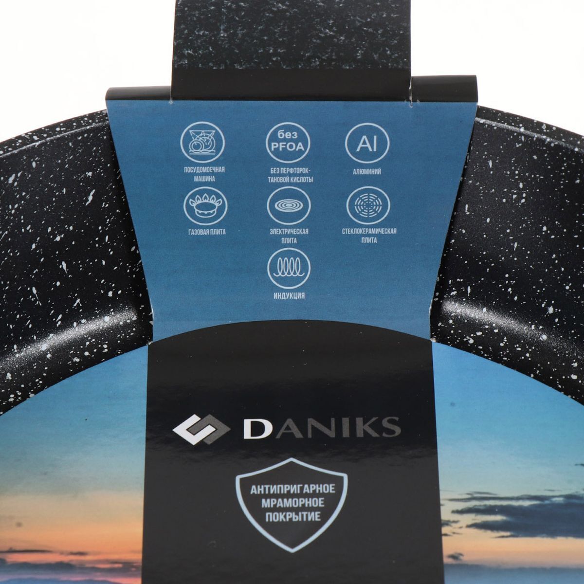 Сковорода выполнена из алюминия с антипригарным покрытием «Гранит». Не содержит PFOA.