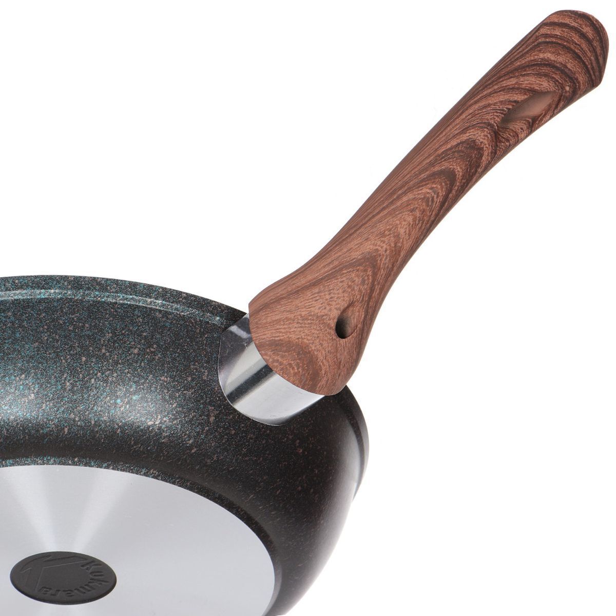 значительная толщина стенок и дна исключает деформацию корпуса сковороды, гарантирует ее долговечность, обеспечивает необходимую прочность покрытия;